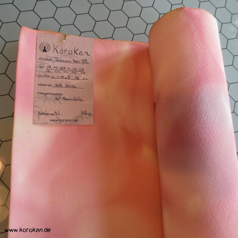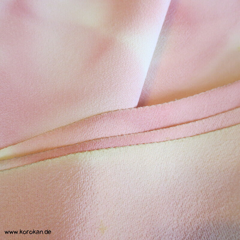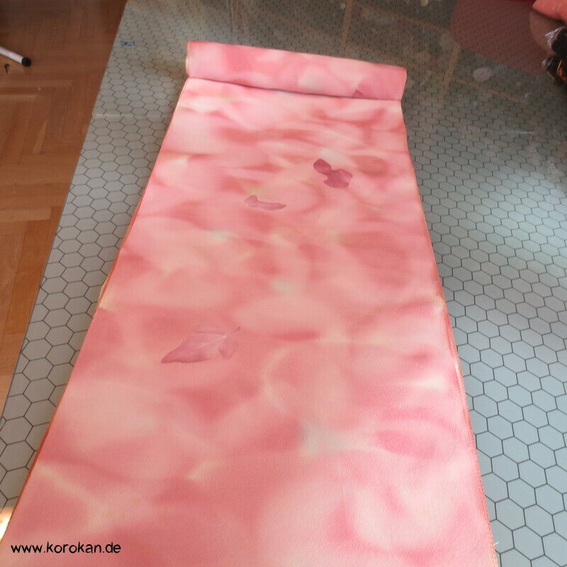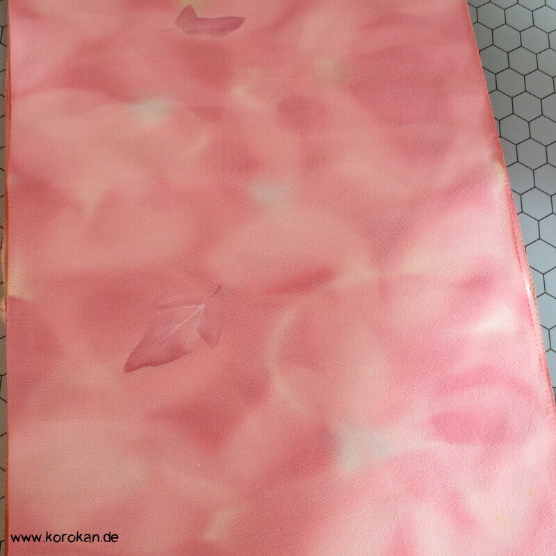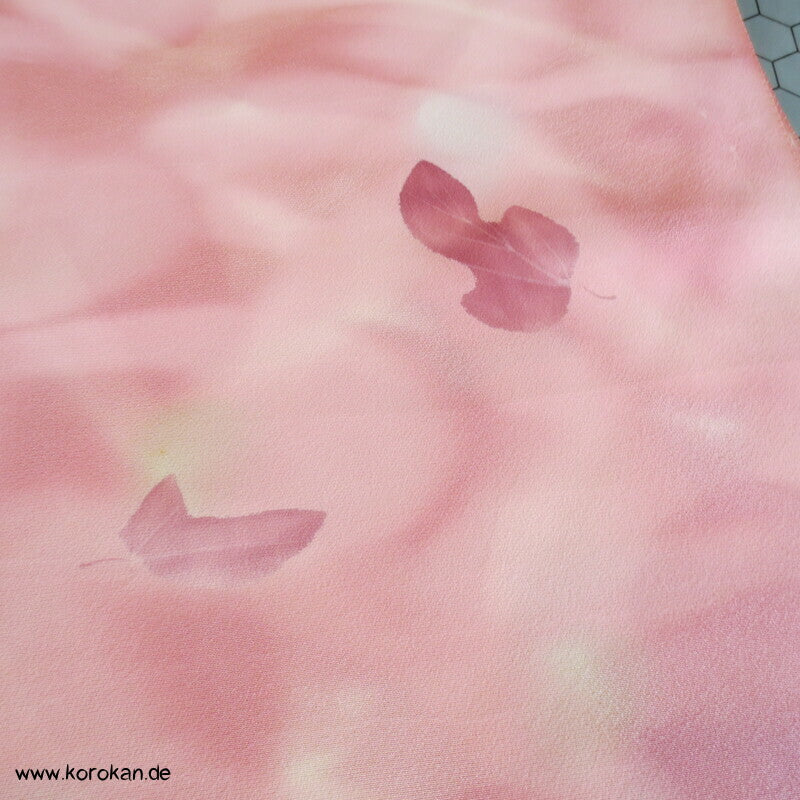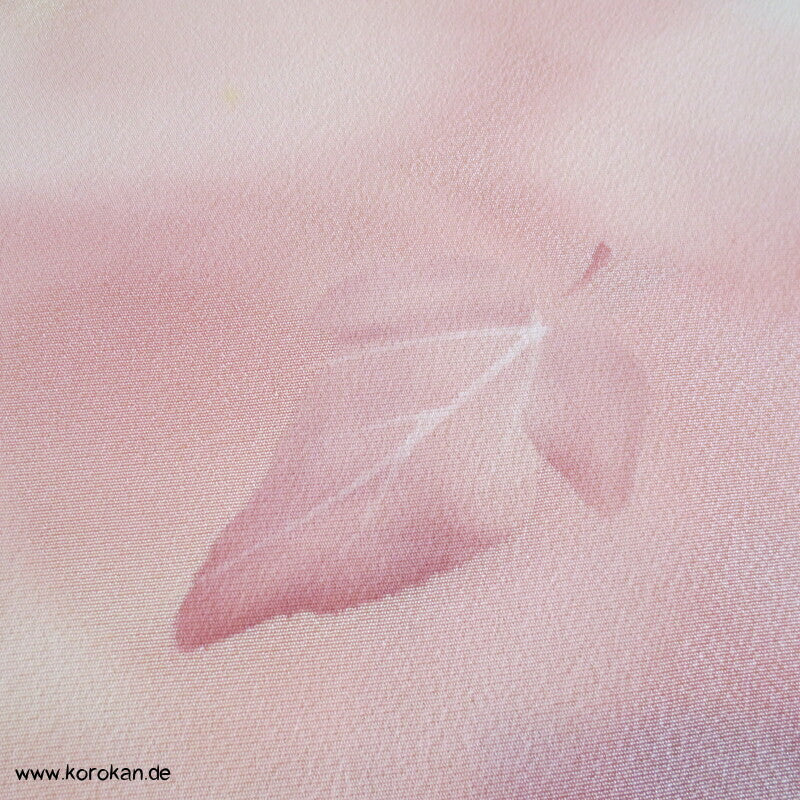 Seidencrepe Kimono Tanmono Stoffrolle, Blätter in altrosa