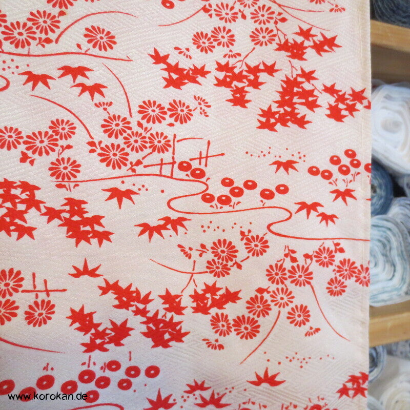 Seidendamast Juban Unterkimono, zartrote Gartenlandschaft