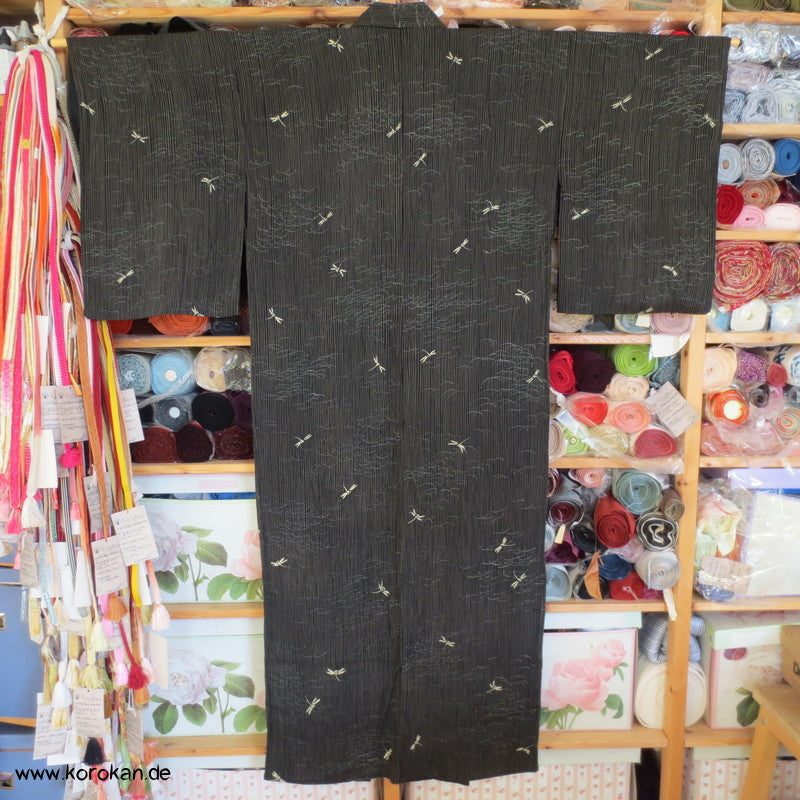 Seidenstreifencrepe mit Libellen antiker Hitoe Komon