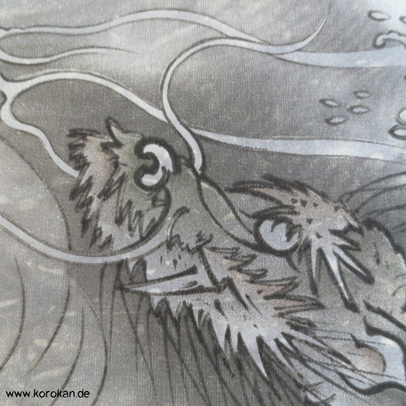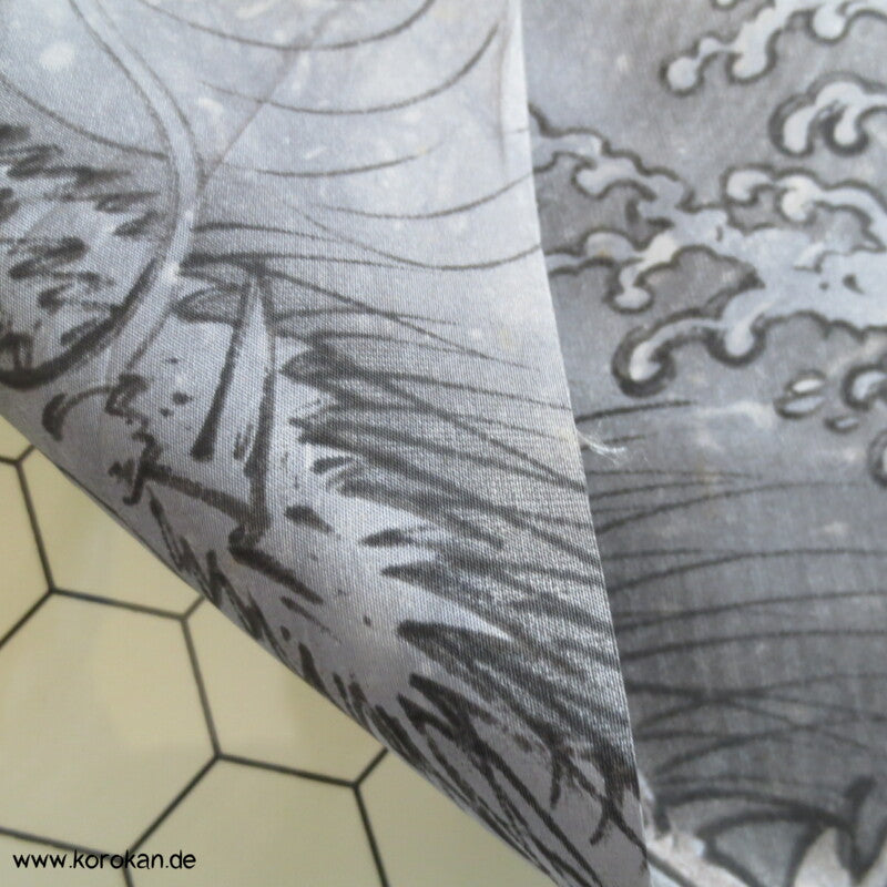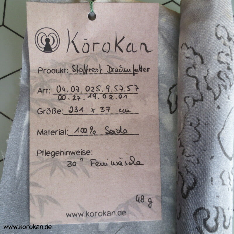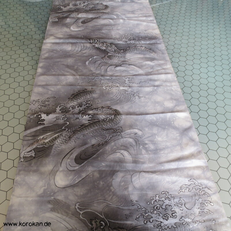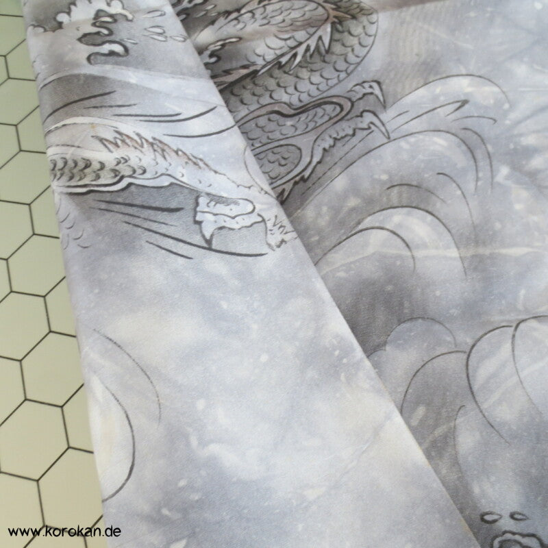 Seidentaft Kimonofutter Stoffrest Drachen in Wellen