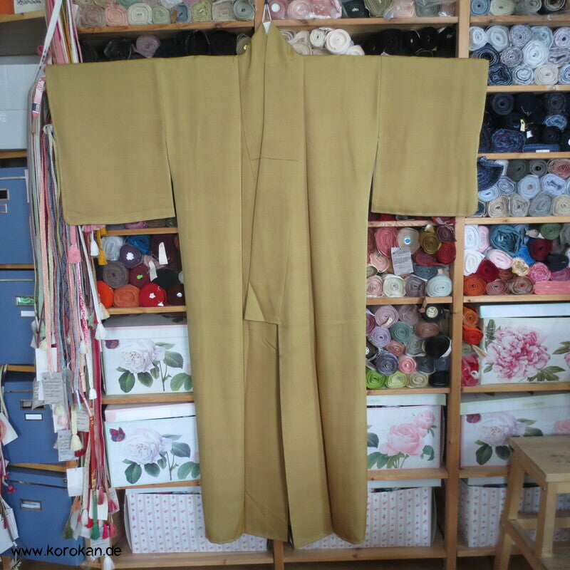 Vintage blass senffarbener Seidencrepe Iromuji Kimono ohne weitergehende Muster