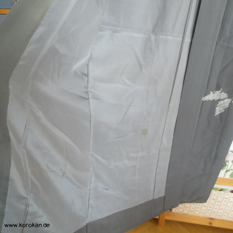 Vintage Männer Juban Unter Kimono, Seidencrepe mit Shibori Punkt gebatikten Bambus auf Zacken Farbverlauf mit ausgemalten Bambusblättern, voll gefüttert mit heller Seide, graublauem Rips Han Eri Kragen