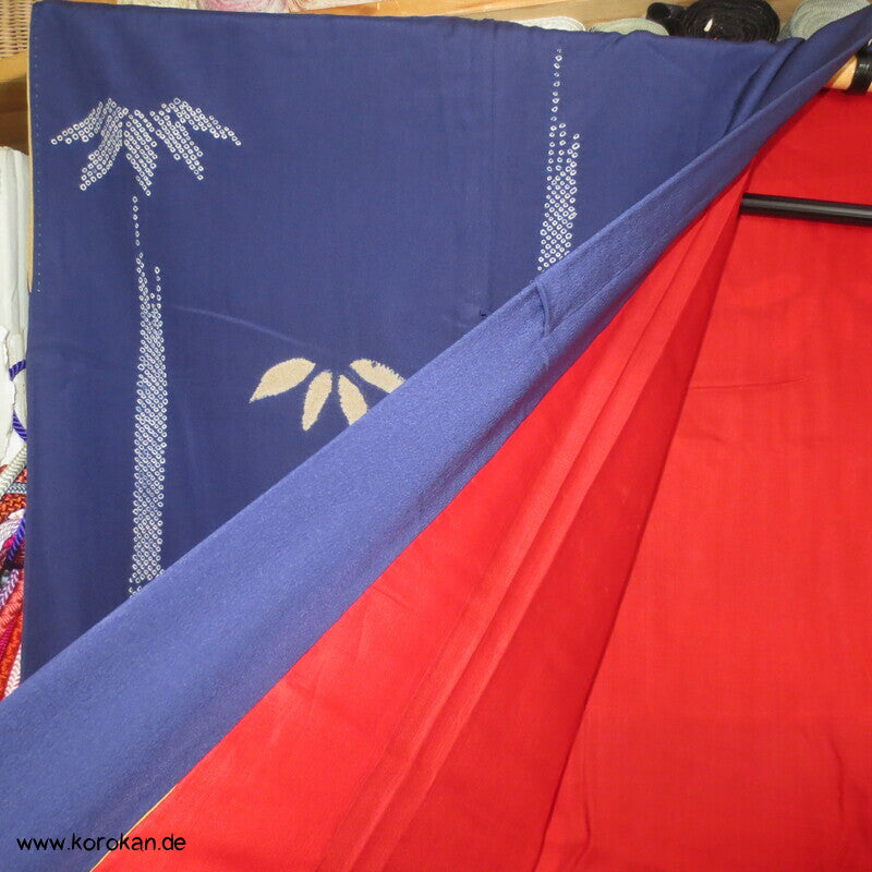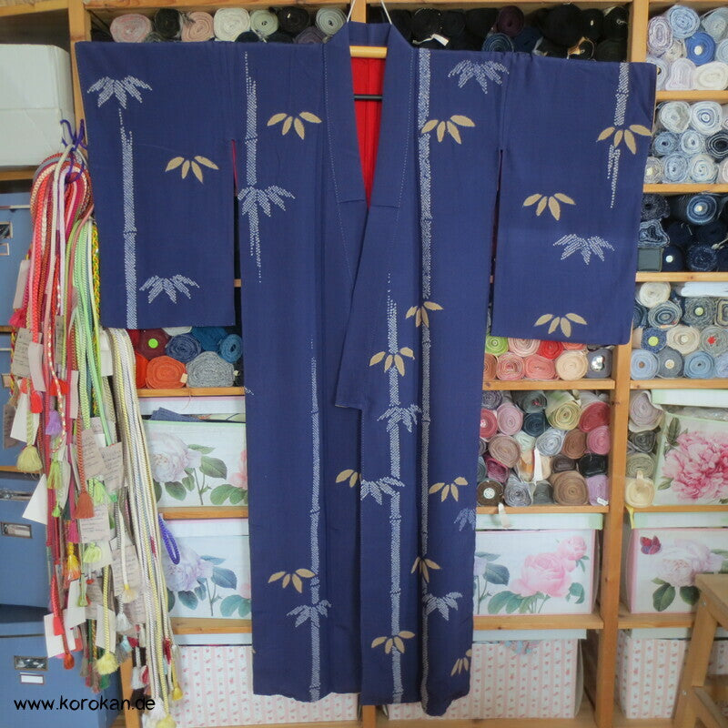 Shibori Bambusmuster, blauvioletter Seiden Homongi Kimono