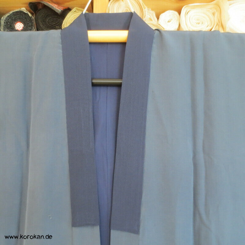 Vintage Männer Juban Unter Kimono, Seidencrepe mit Shibori Punktbatik Ebikrabben Languste auf Blatt, voll gefüttert mit blauer Seide und einem schwarzblauen Ripskragen.