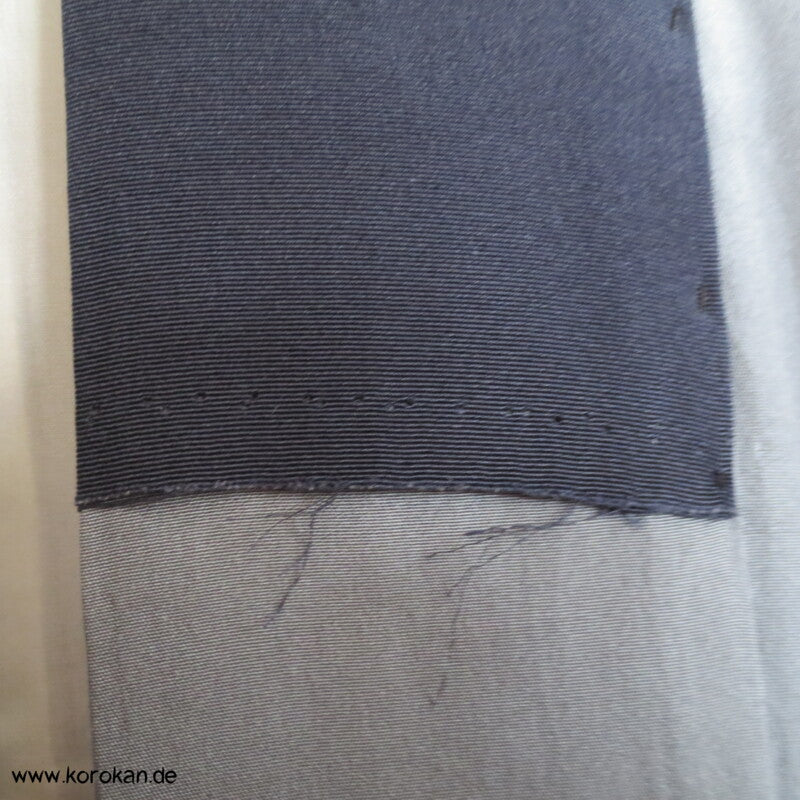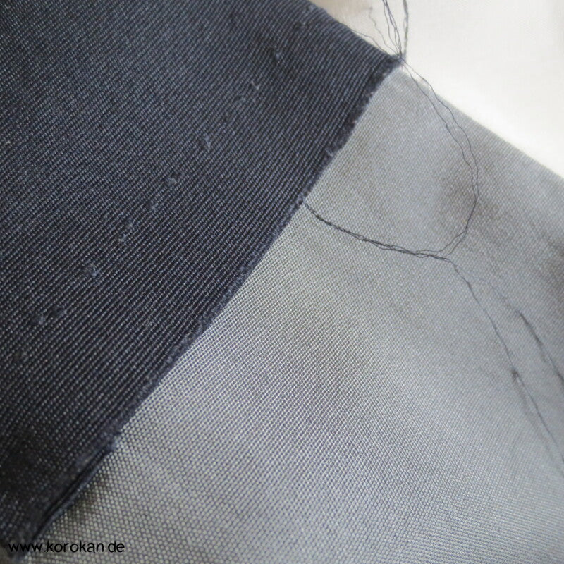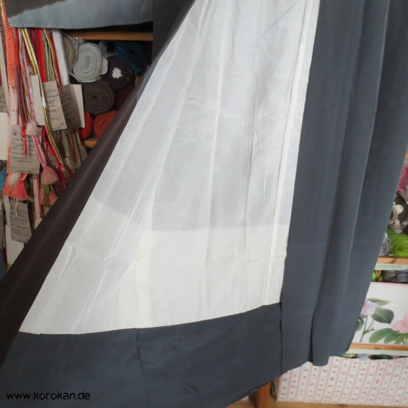Vintage Männer Juban Unter Kimono, Seidencrepe mit Shibori gebatikte Fuji san, gefüttert mit heller Seide und einem graublauen offen aufgenähten Ripskragen.
