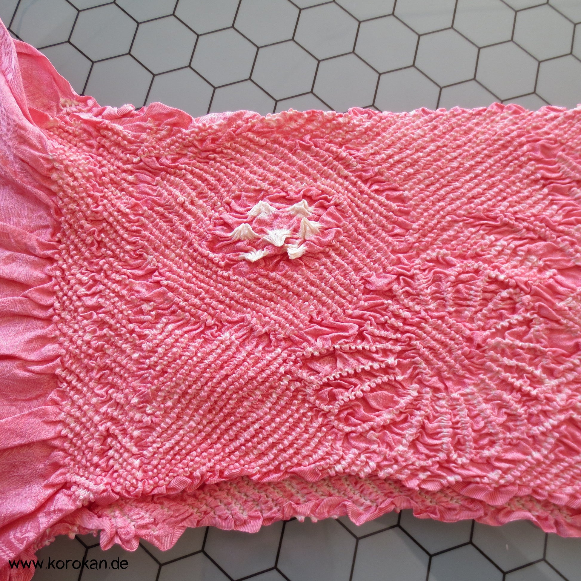 Vintage Obiage Seide, Full Shibori auf Sayagata Seidendamast