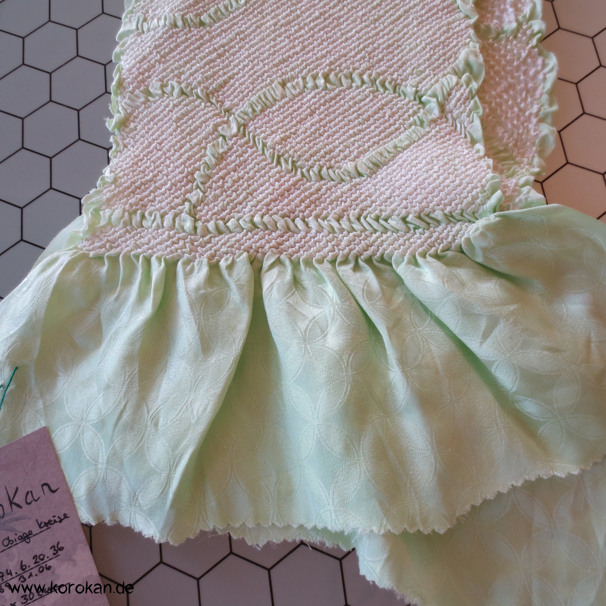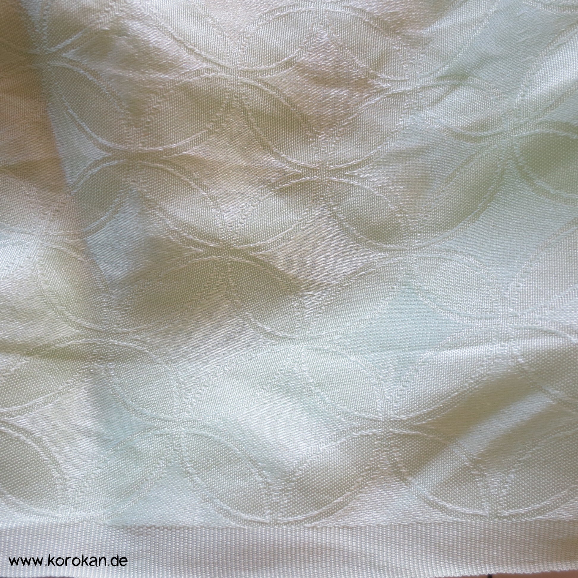 Vintage unbenutzter Obiage Seide, hellgrünes Shibori auf Shippo Kreise Damast