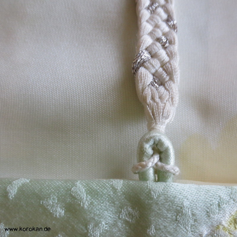 Shibori Wolken auf zartgrün Seidendamast Haori Kimono Jacke