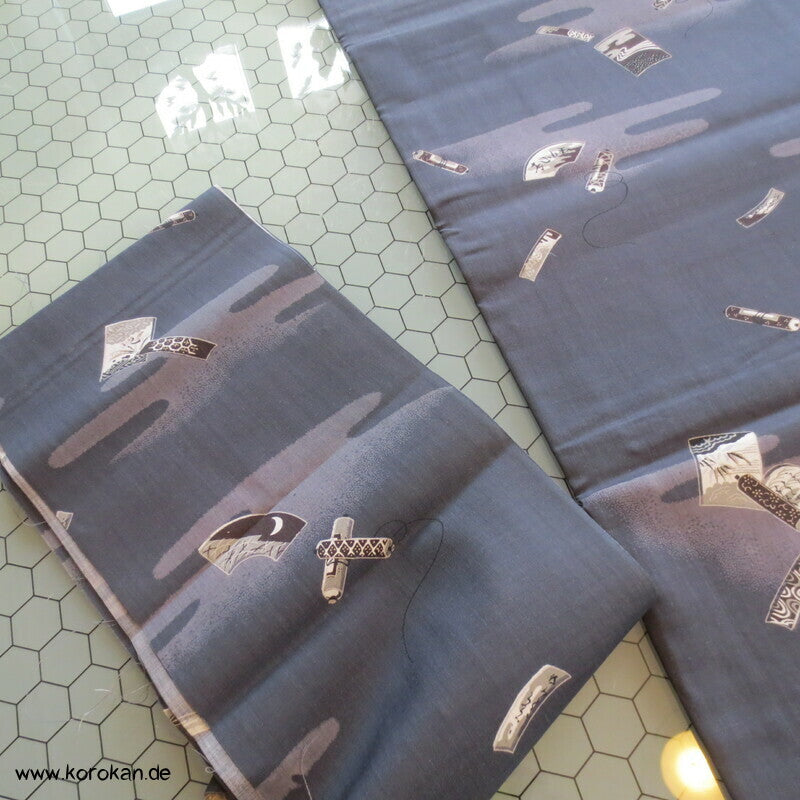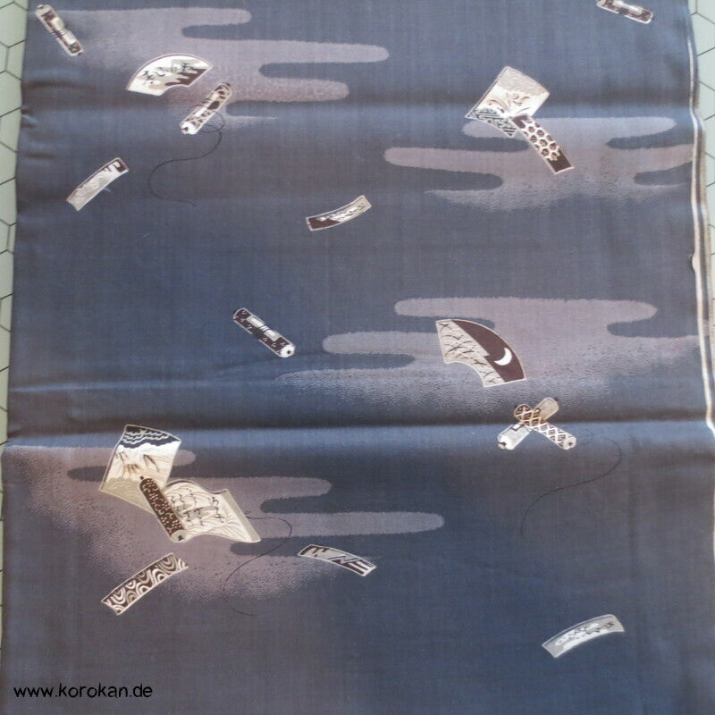 Vintage unbenutzte originalgeheftete Stoffrolle Tanmono feiner weicher Wollmuslin mit Bildrollen und Büchern im Nebel für Juban Unter Kimono