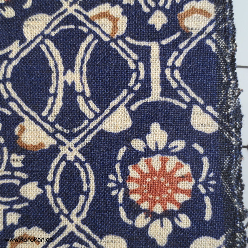 Vintage unbenutzte Stoffrolle Tanmono Wolle mit einem Druck Blüten in Shippo Gitternetz .