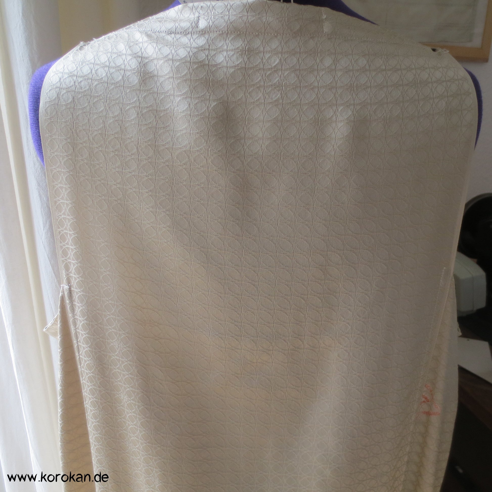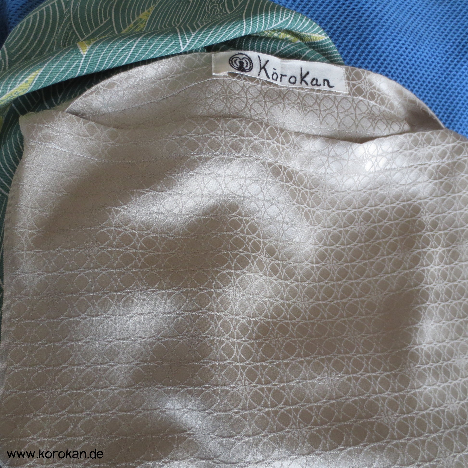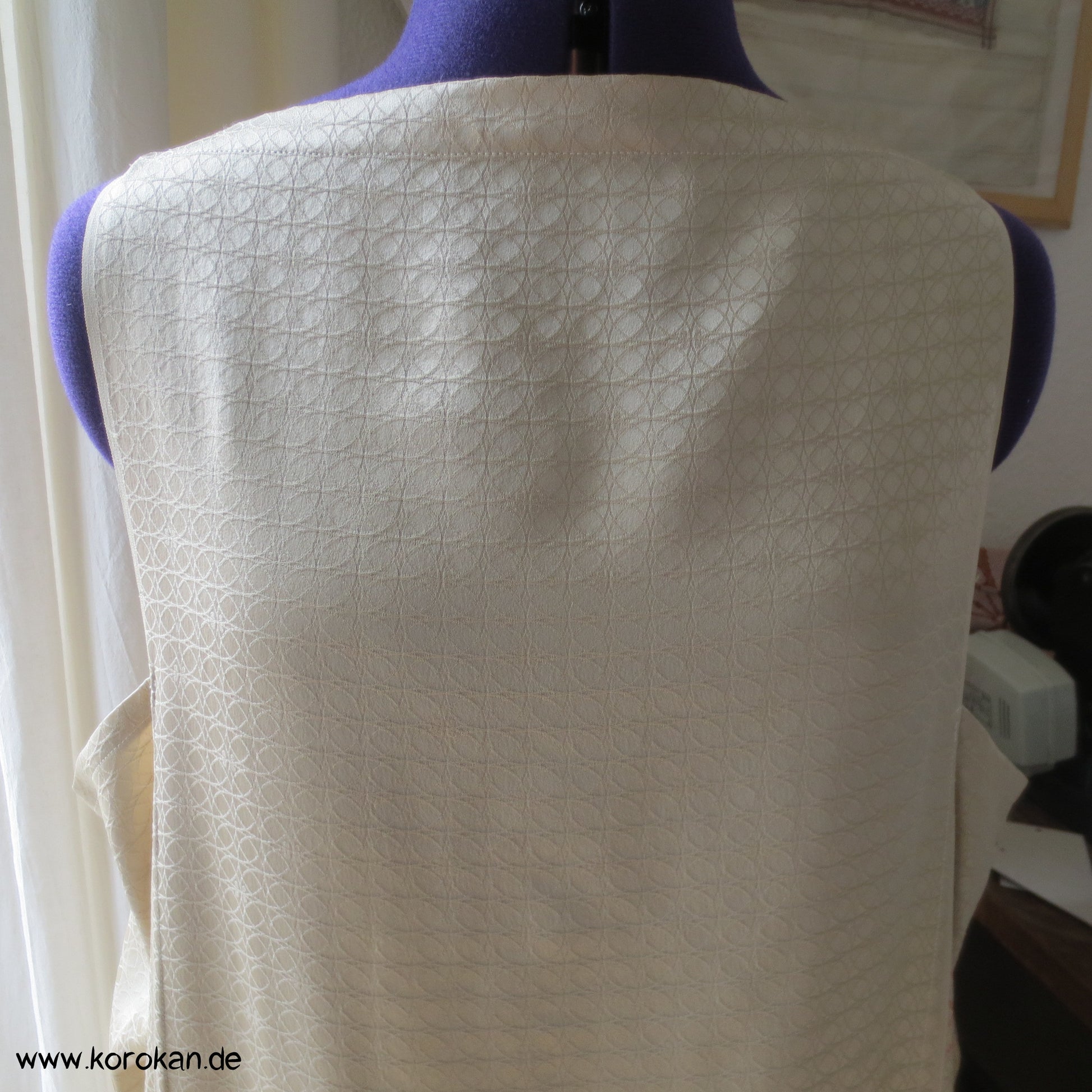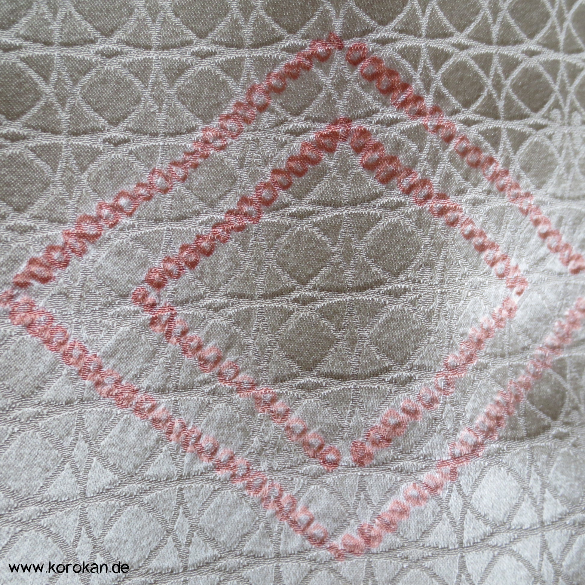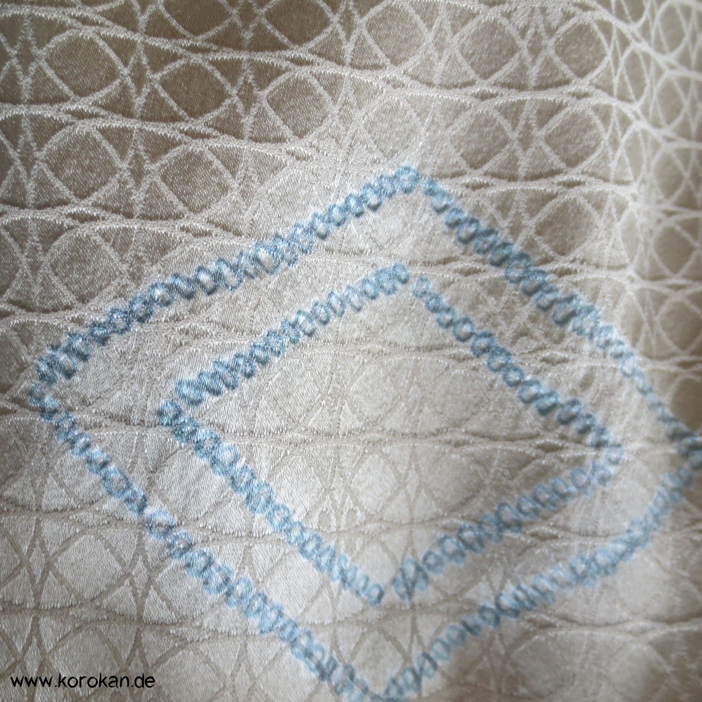Unterkleid aus feinster japanischer Damastseide mit eingewebten Shippo überlappenden Kreisen und ein paar Shibori Diamantrauten