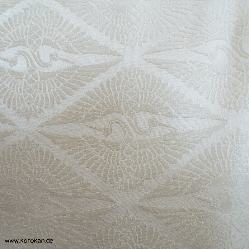Shiromuku Hochzeits Kimono, Rinzu Seiden Damast mit Diamantkranichpaaren