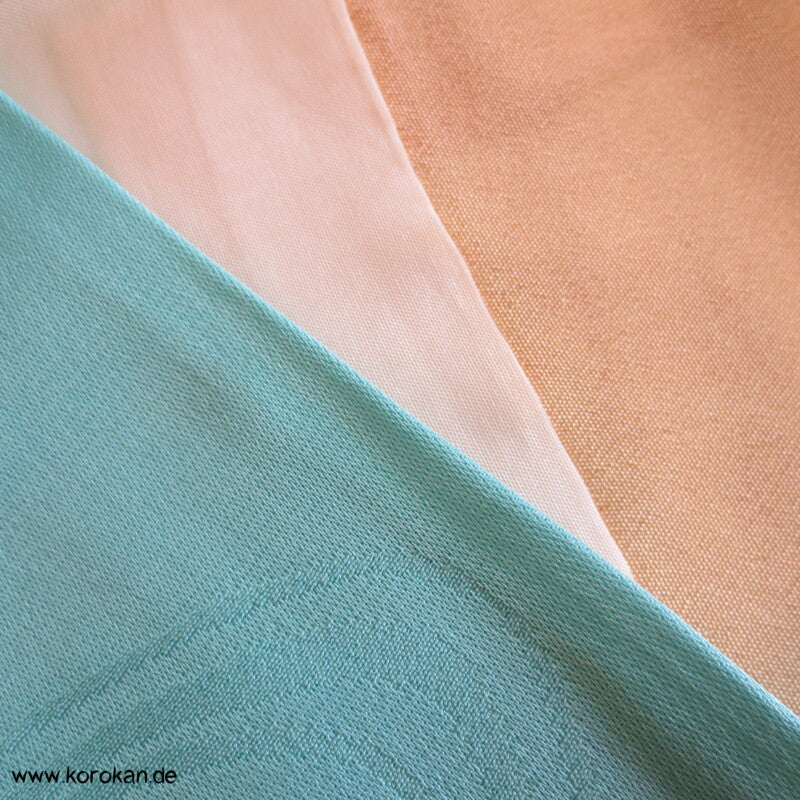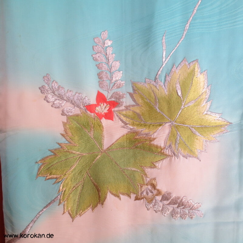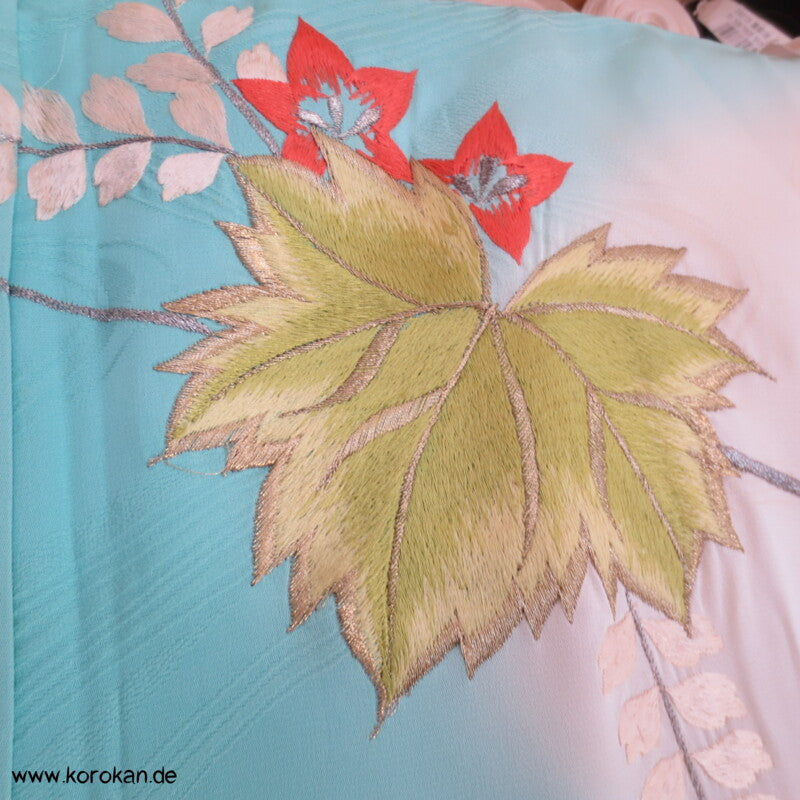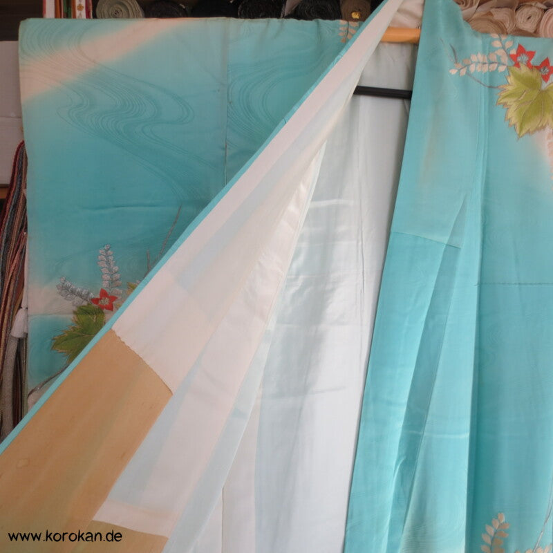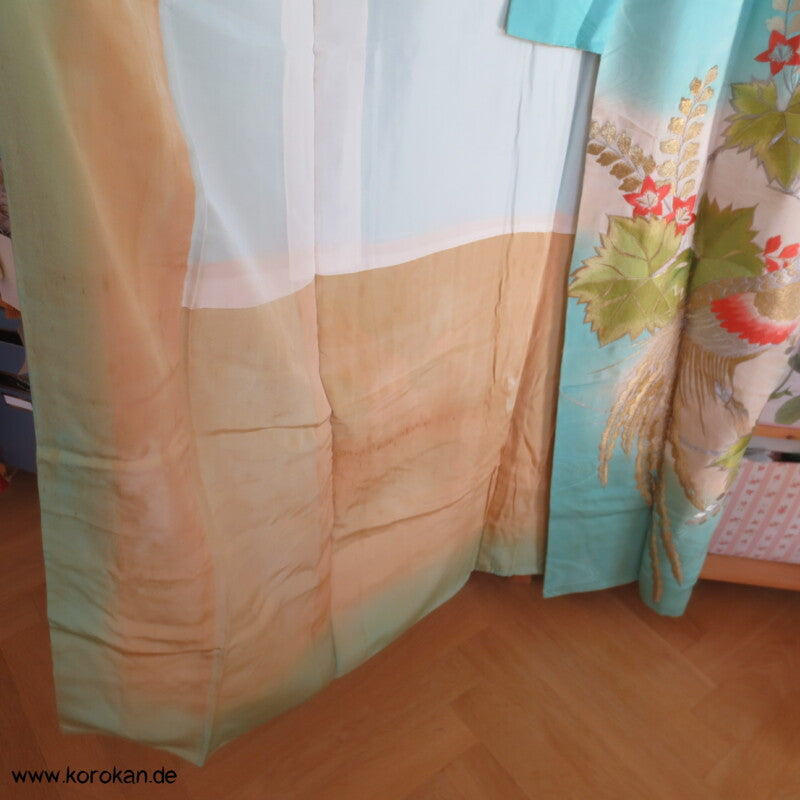 Oberes Futter helle Seide, unteres Hakkake Seidenfutter mit Bokashi Verlaufsrand.