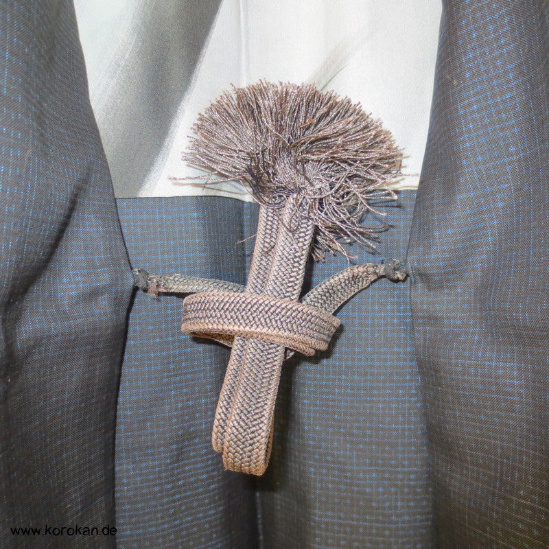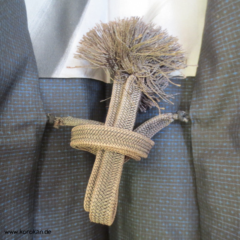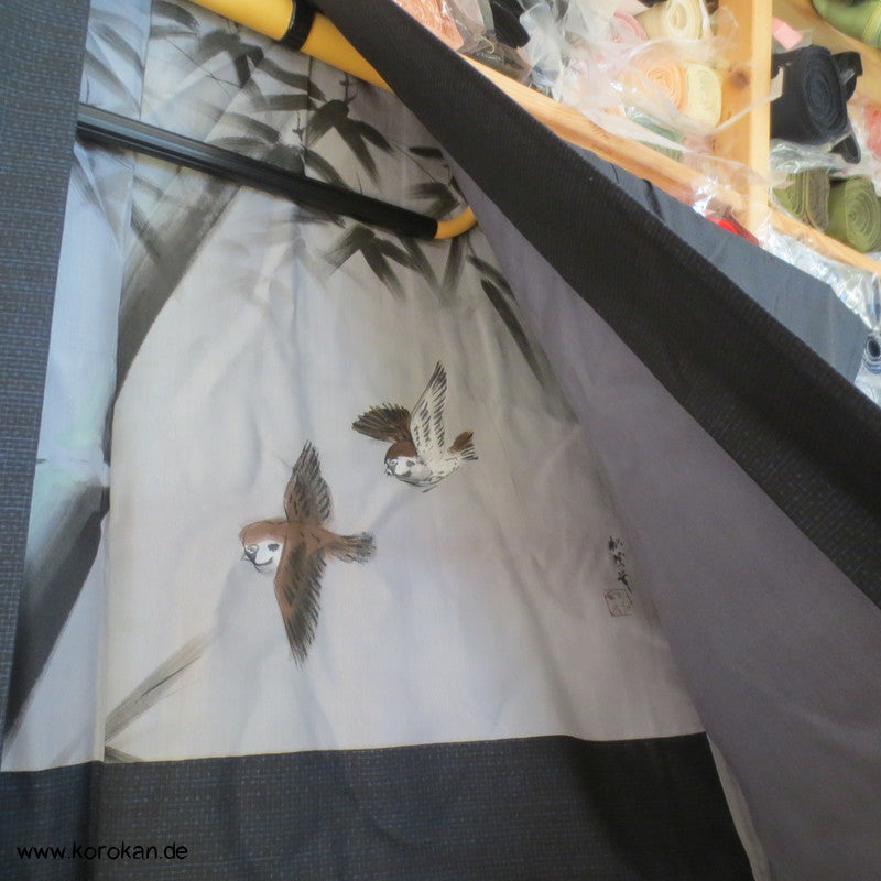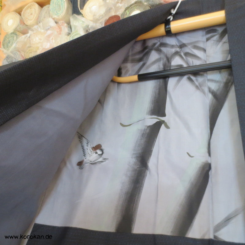 Spatzen im Bambus Futter, im blauen Tsumugi Kasuri Haori mit Himo