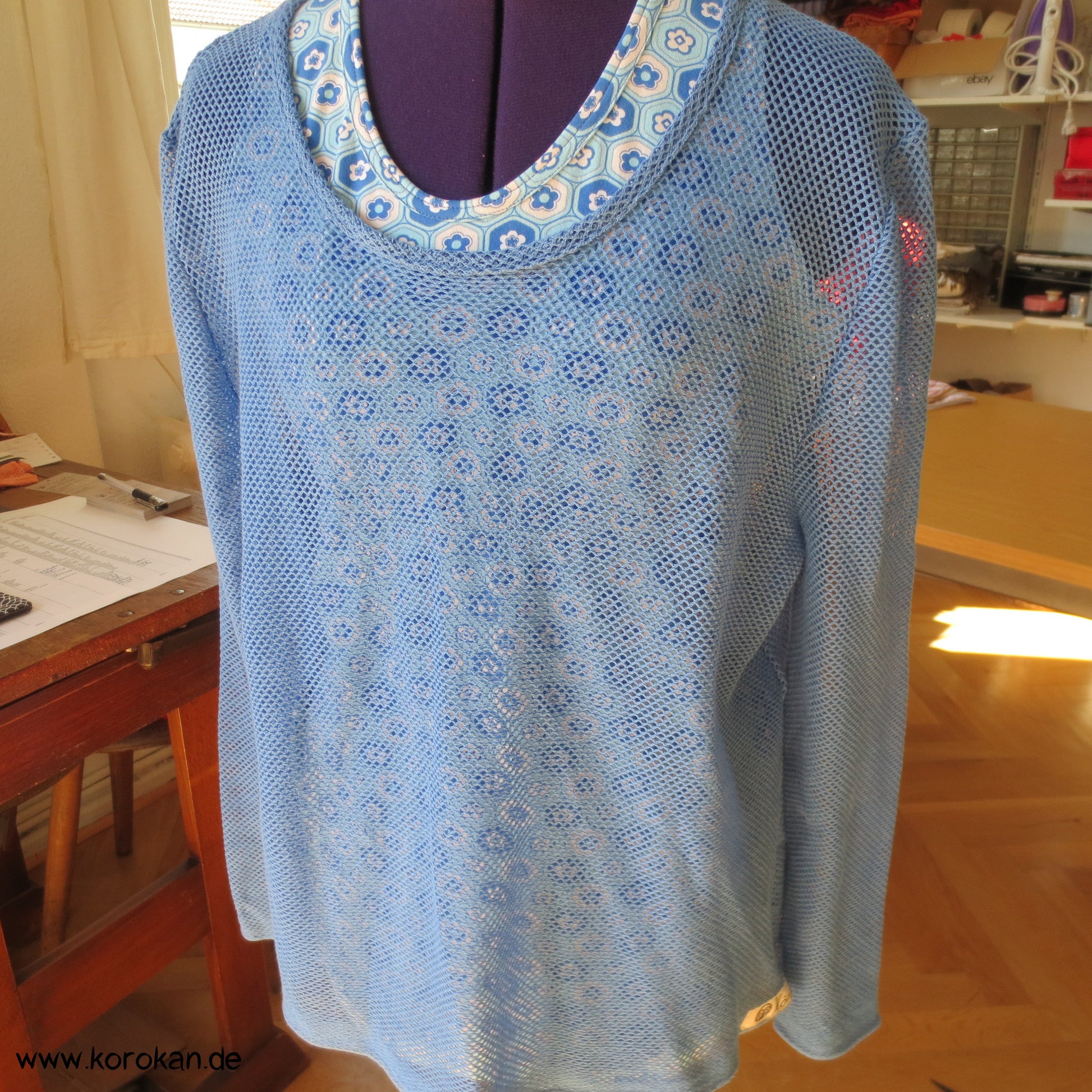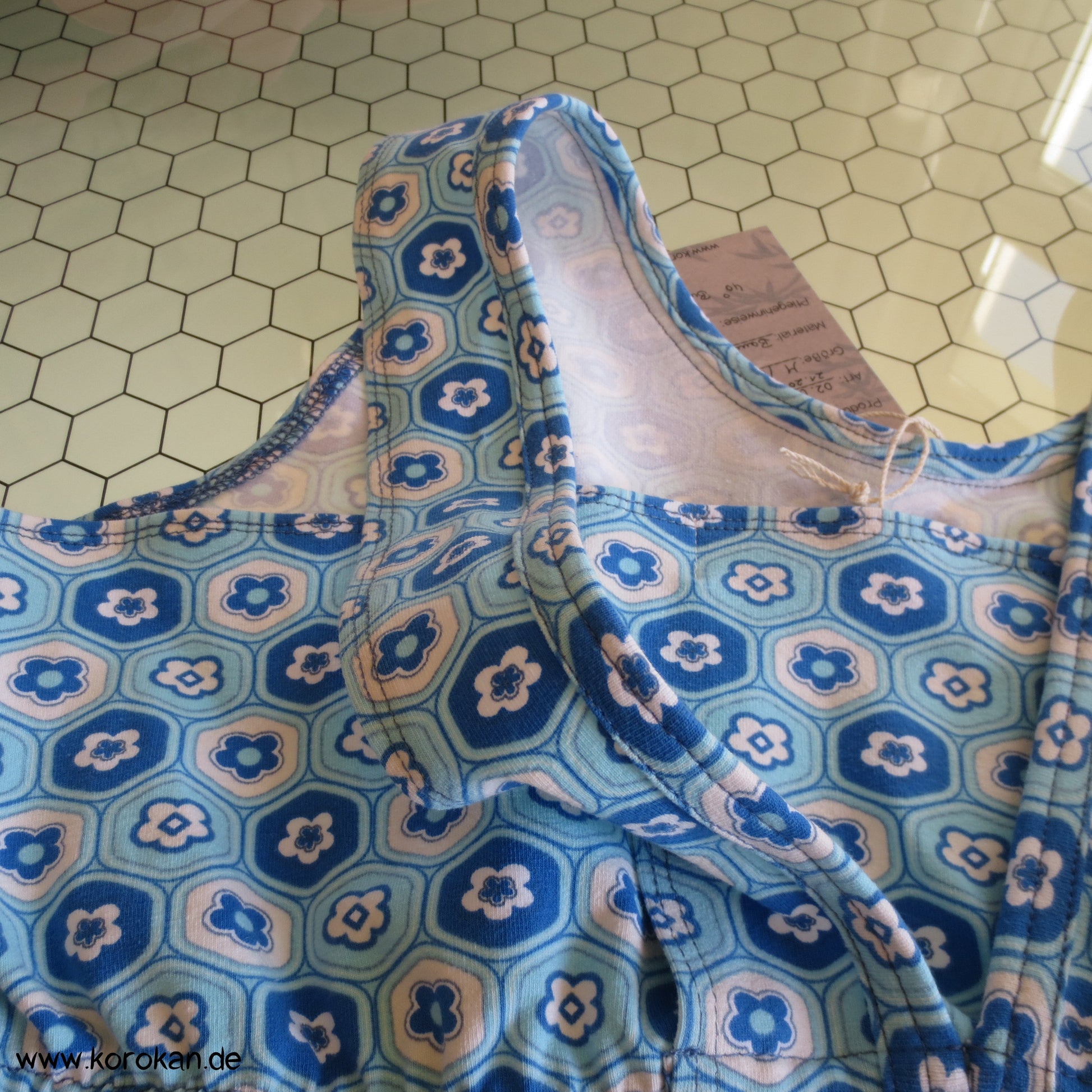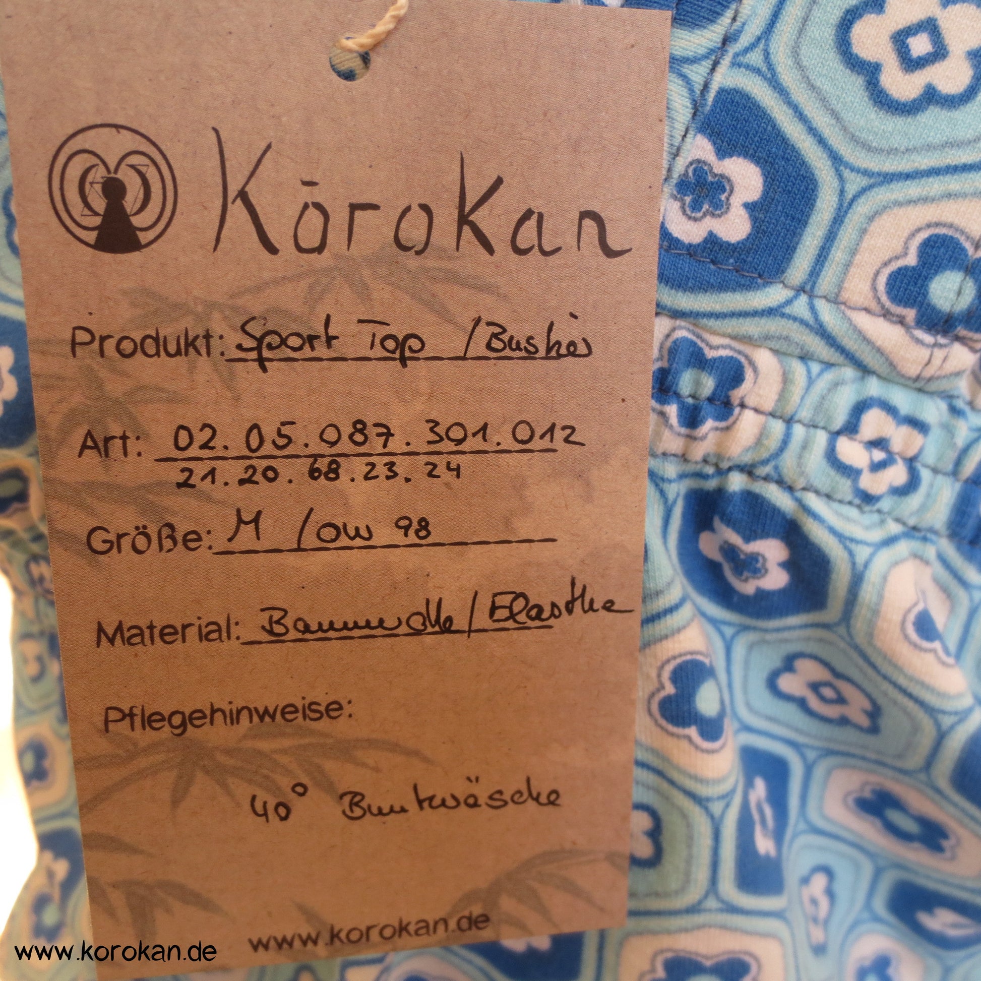 Sporttop Bustier Top aus einem Baumwoll Jersey mit Elasthan Anteil, breiten Trägern, Unterbrust Gummiband. Kikko Motive - war als Unterzieher unter das blaue Netzshirt gedacht