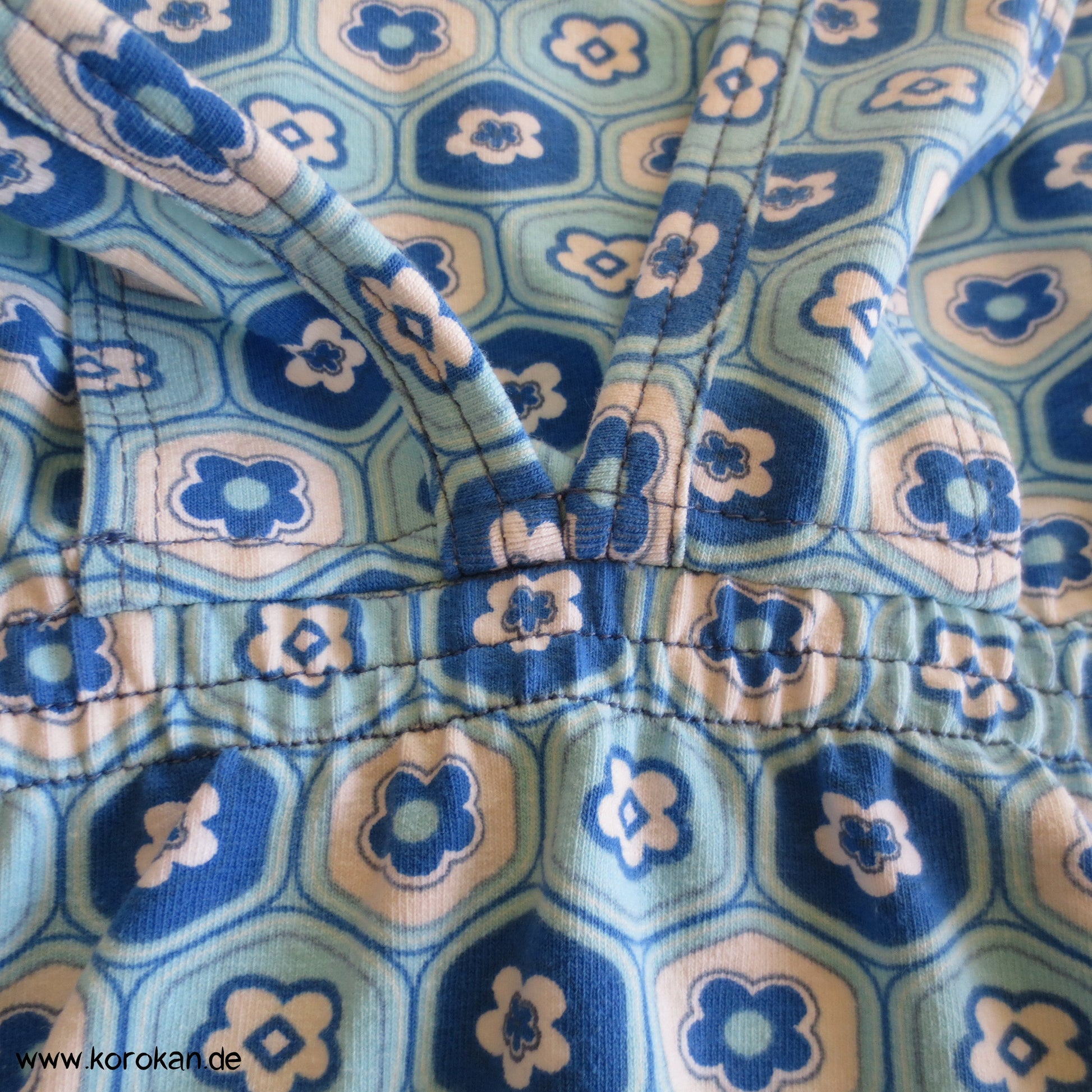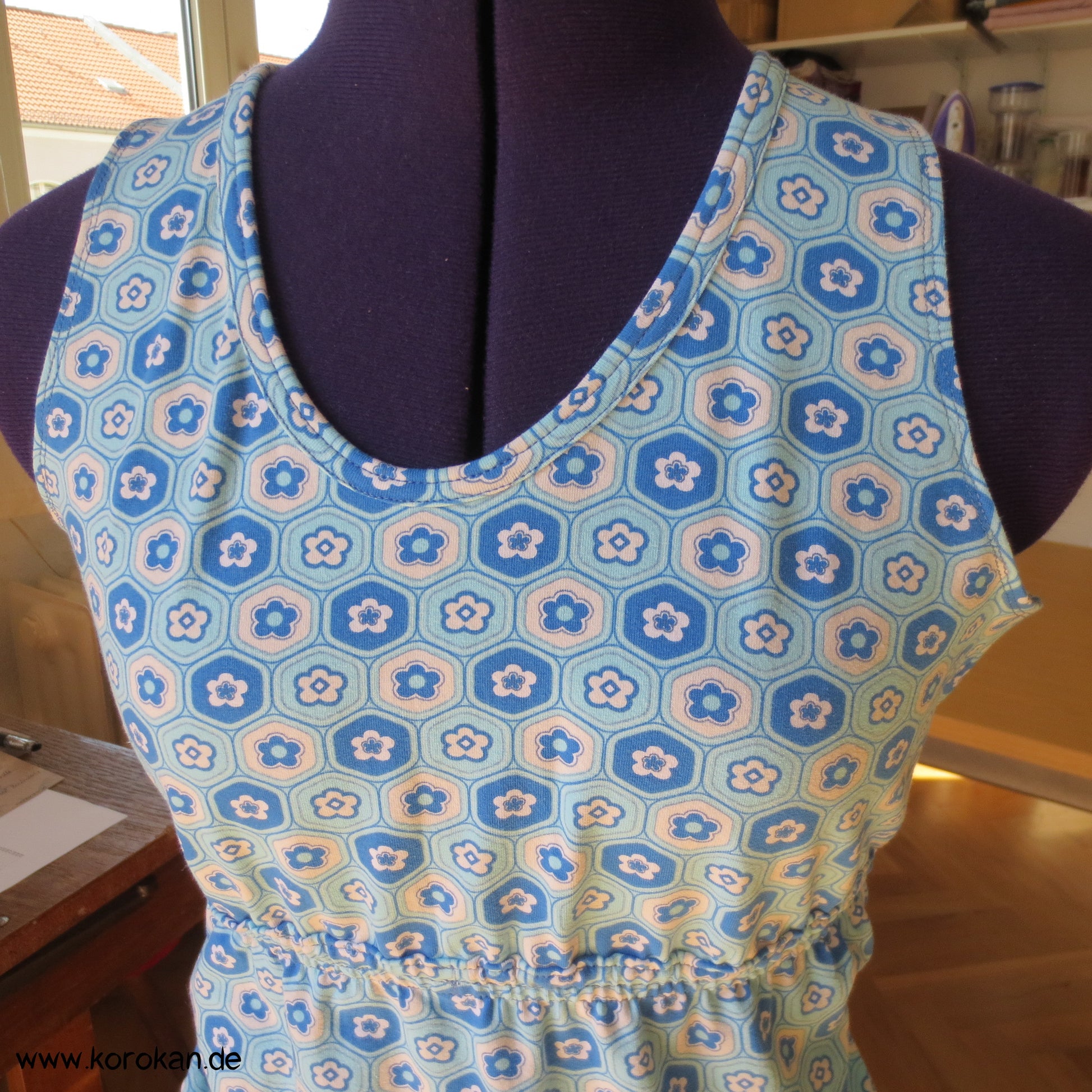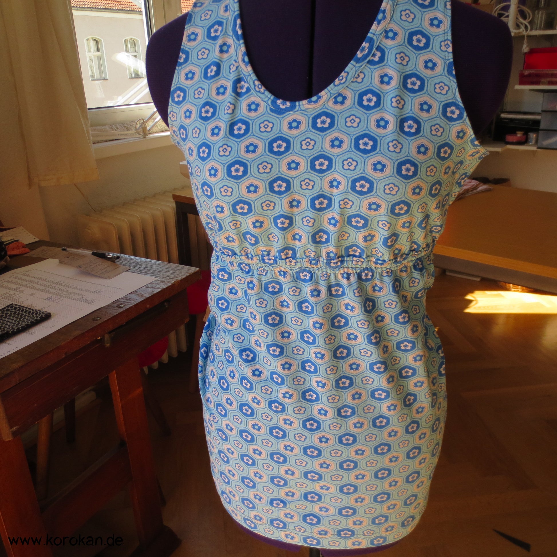 Sporttop Bustier Top aus einem Baumwoll Jersey mit Elasthan Anteil, breiten Trägern, Unterbrust Gummiband. Kikko Motive - war als Unterzieher unter das blaue Netzshirt gedacht