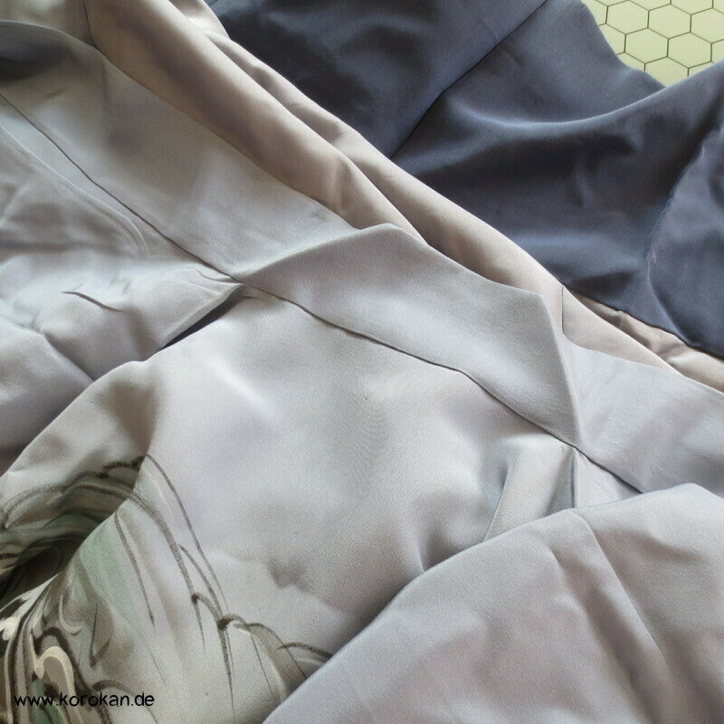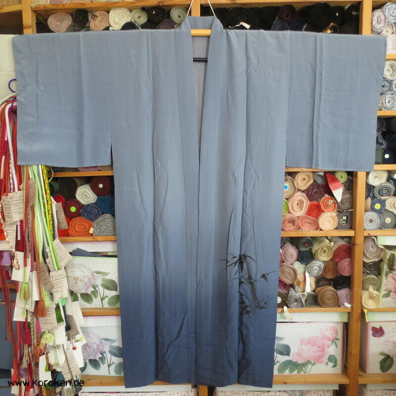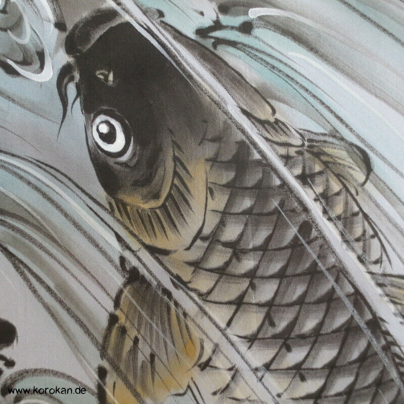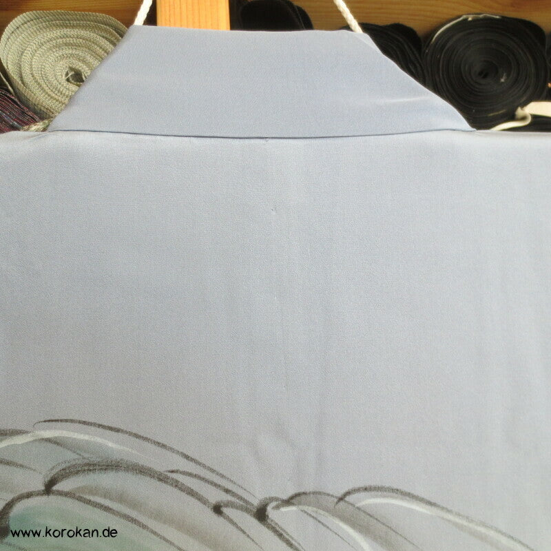 japanischer Vintage Männer Juban Unter Kimono, Seidencrepe mit einem handgemalten springenden Koi im Rücken und Bambus vorne