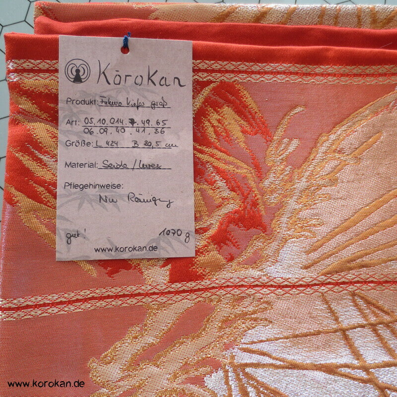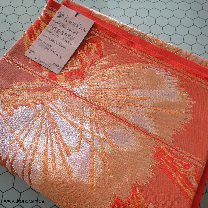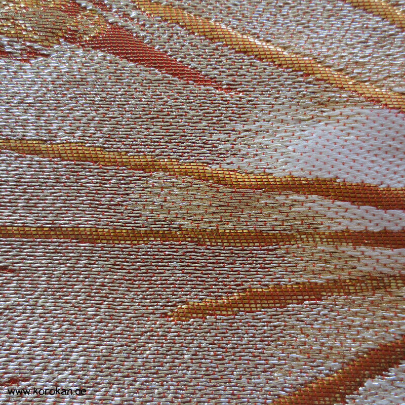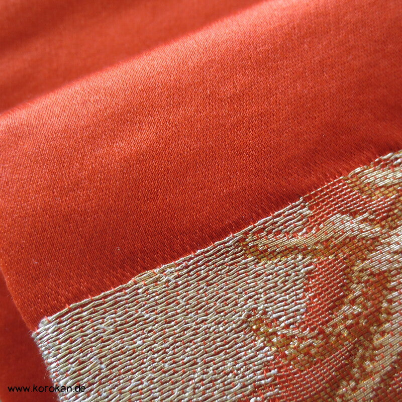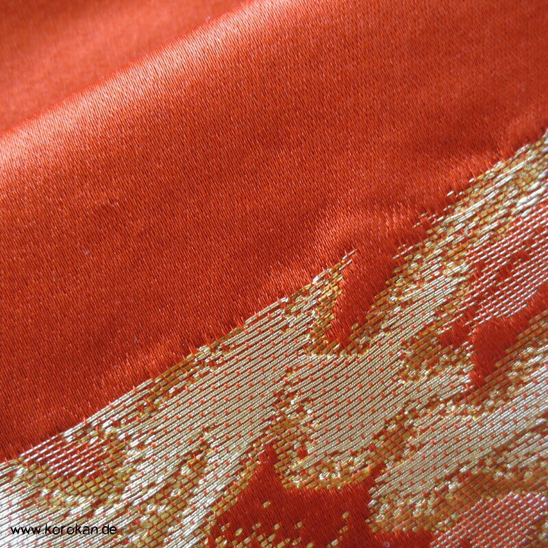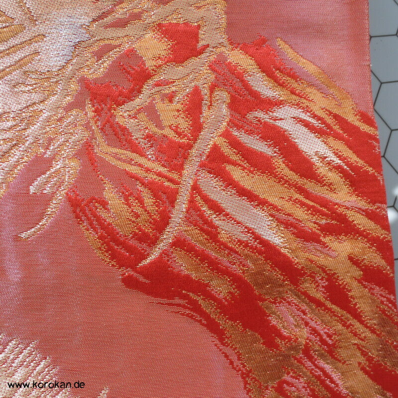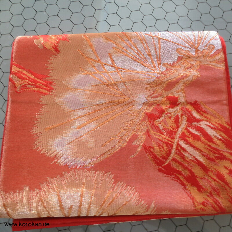 japanischer Vintage Fukuro Obi für Kimono Seidenbrokat stilisierte Kiefern in gold in hellrot