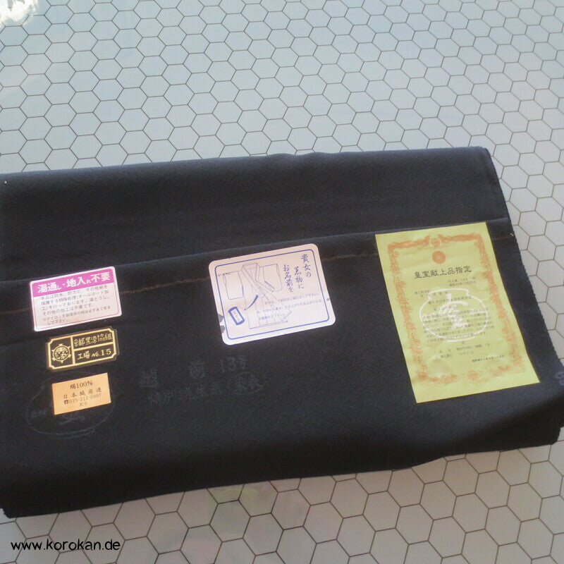 Stoffballen japanische Chirimen Crepe Seide, schwarz Imperial Mofuku