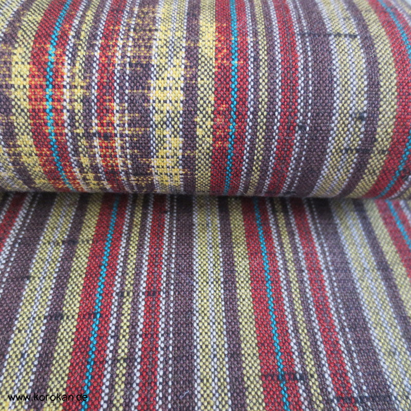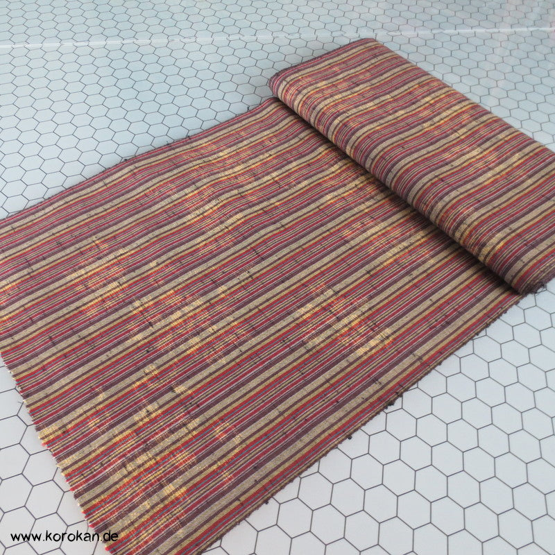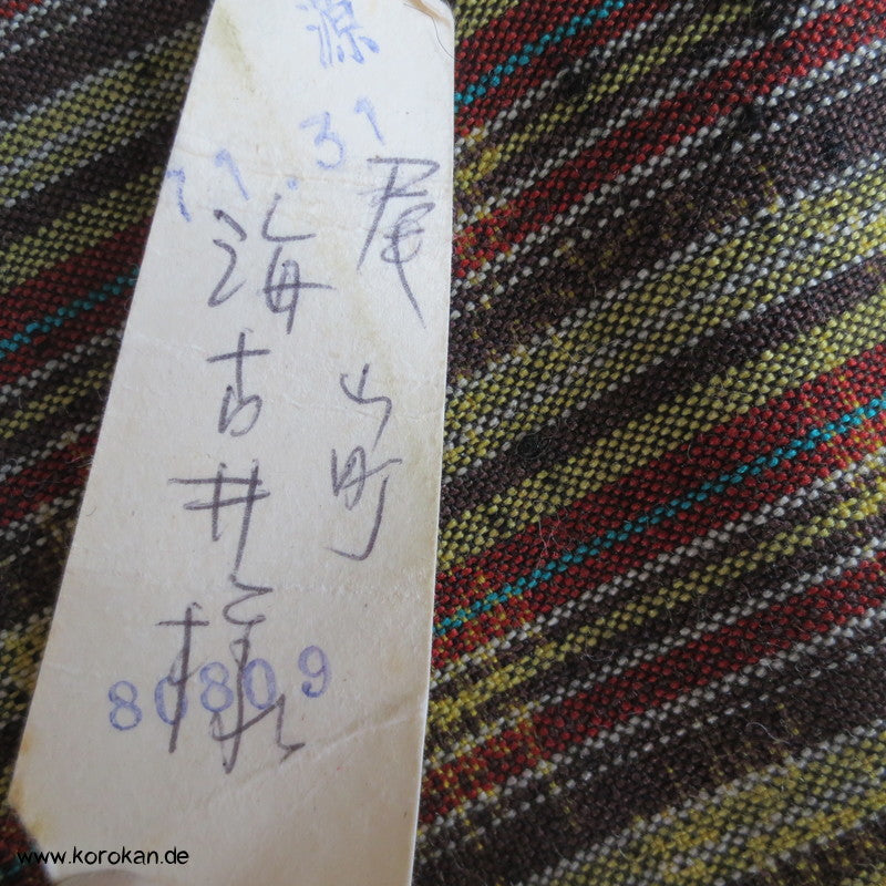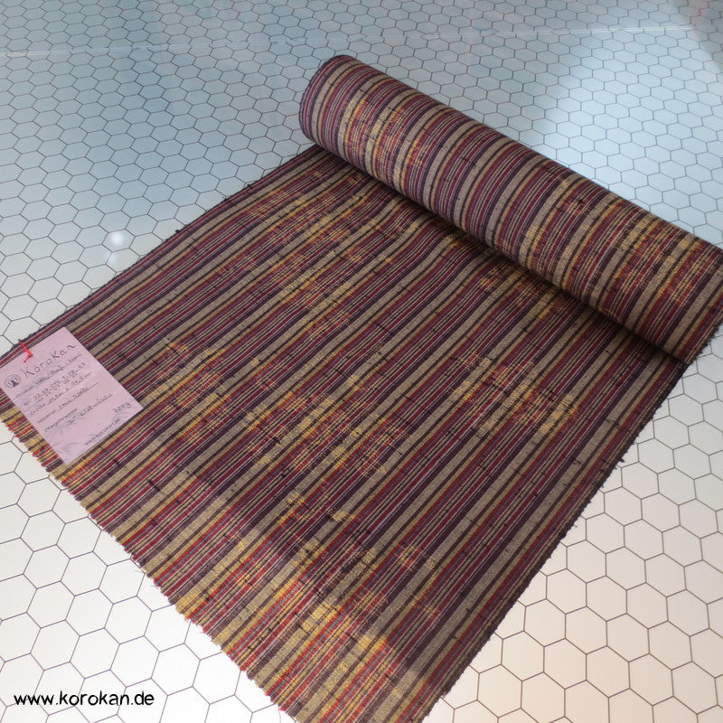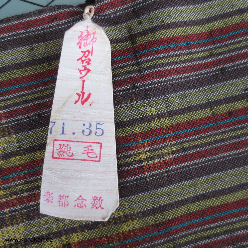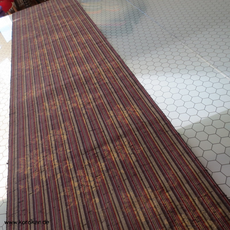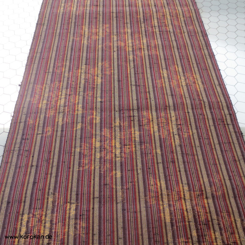 Vintage unbenutzter Kimono Stoff dicker grober Tsumugi Kettstreifen, Schusskasuri Blumen Woll Kimono Stoff