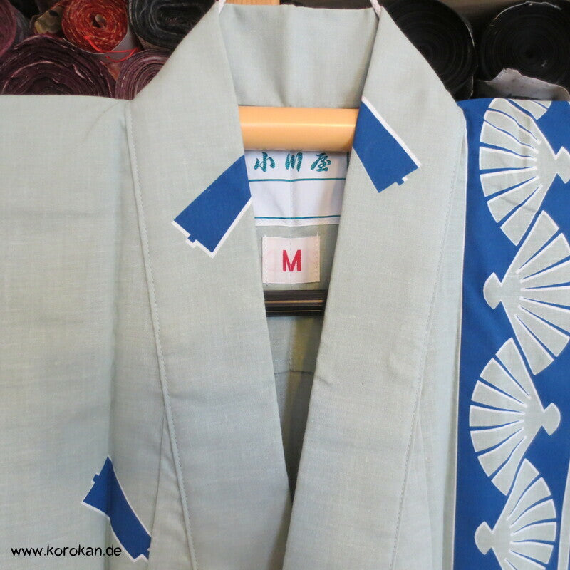 Vintage Männer Baumwoll Yukata Kimono mit Fächerstreifendruck