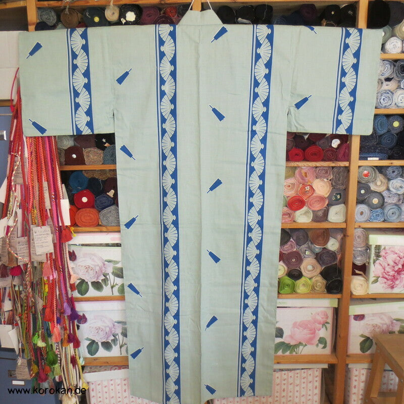 Streifen mit Fächern Yukata Kimono, reine Baumwolle