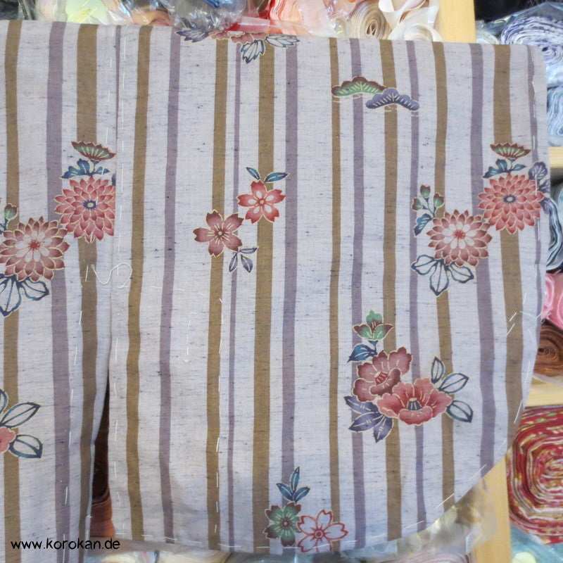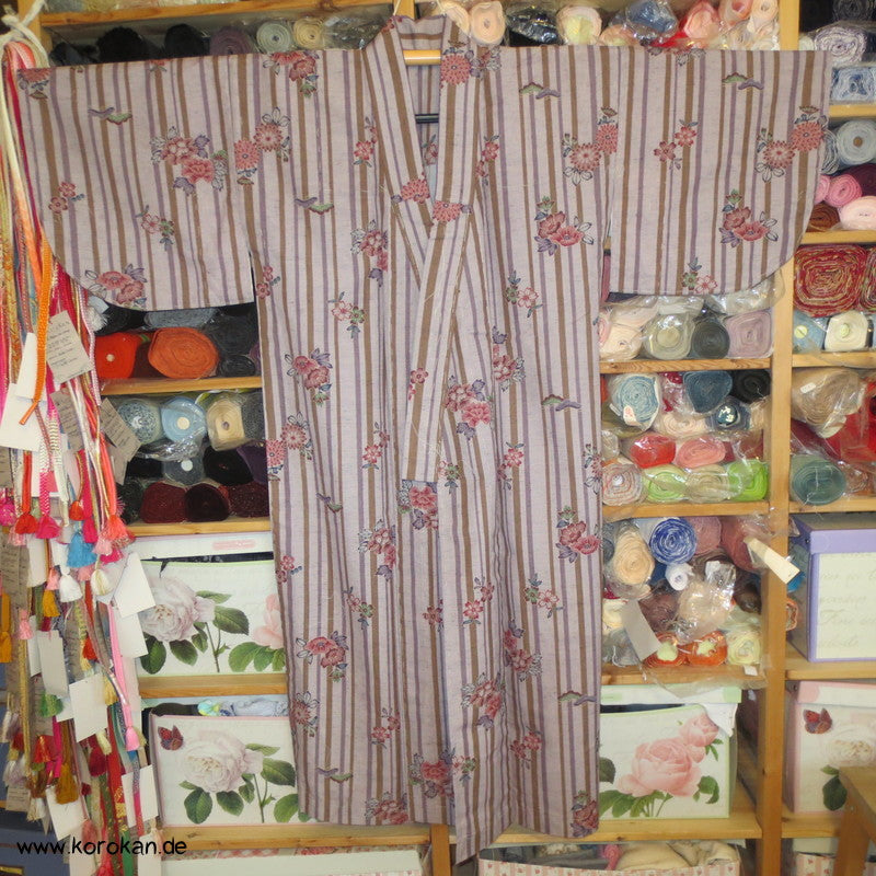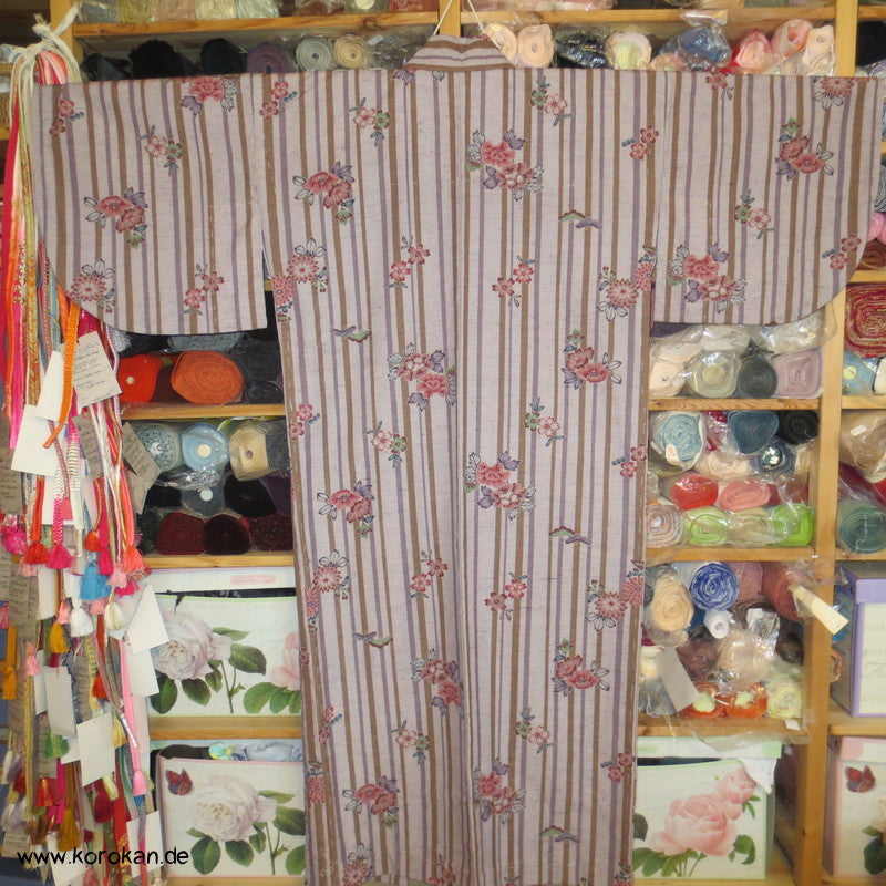 Streifen und Blumen Kosode Hitoe - ungefütterter Kimono