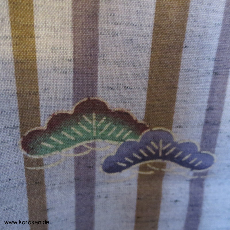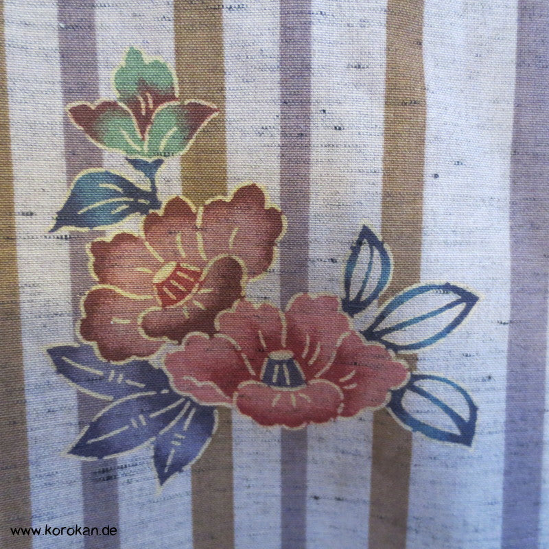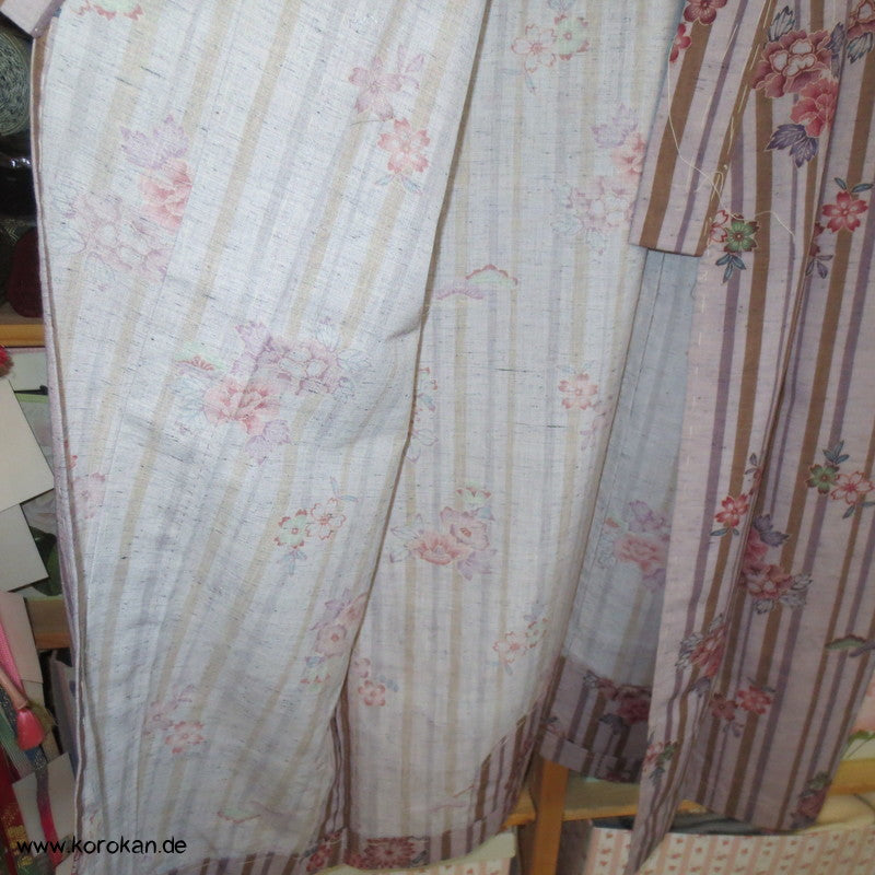 japanischer Vintage Hitoe Kimono, Leinwand gewebt mit einem Streifen und Blüten Druck
