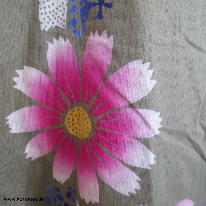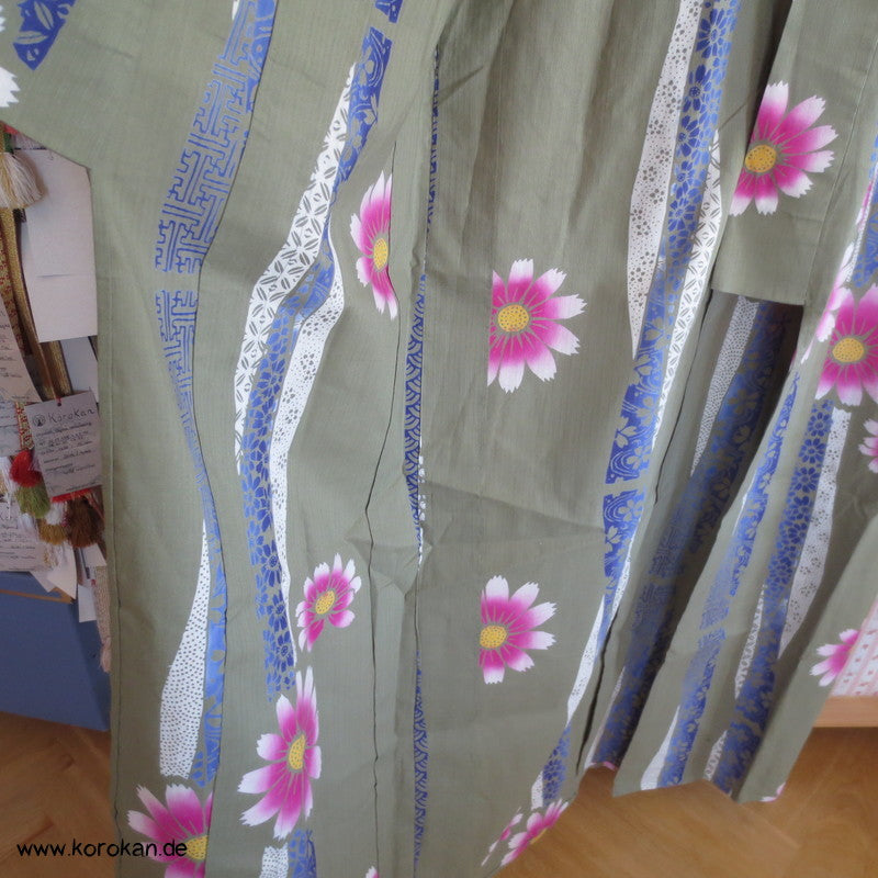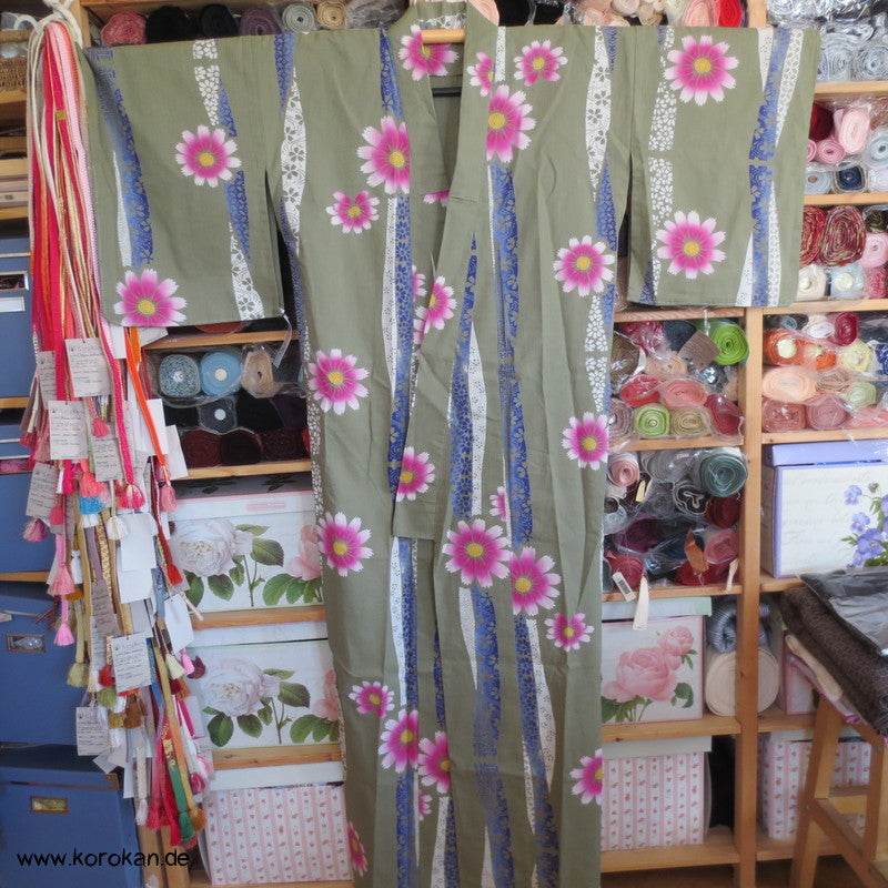 Streifen und Blüten, khaki Yukata, reine Baumwolle