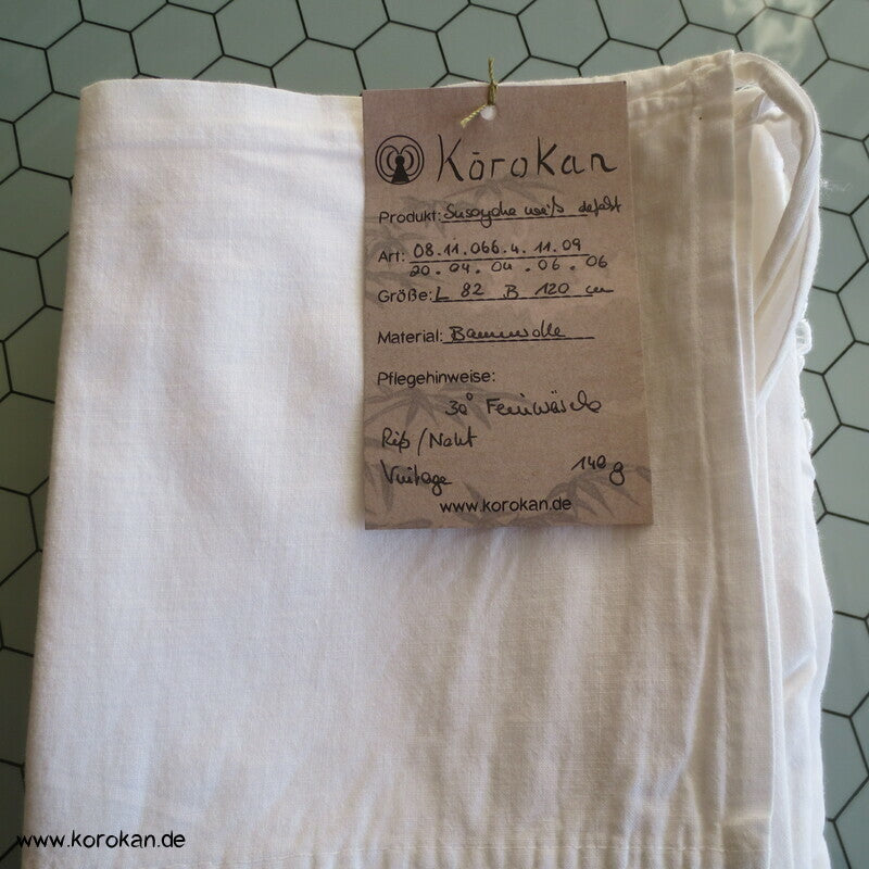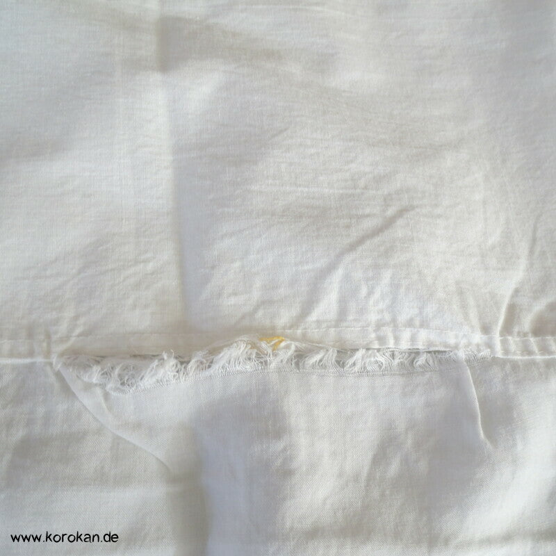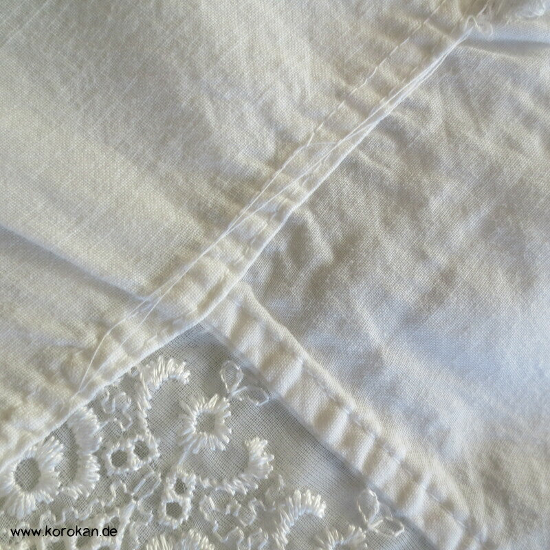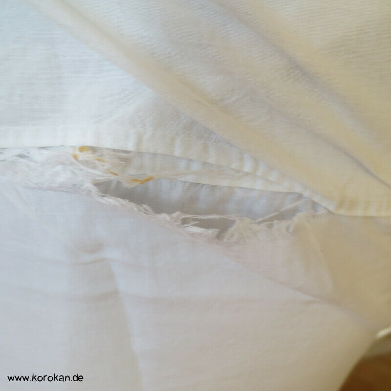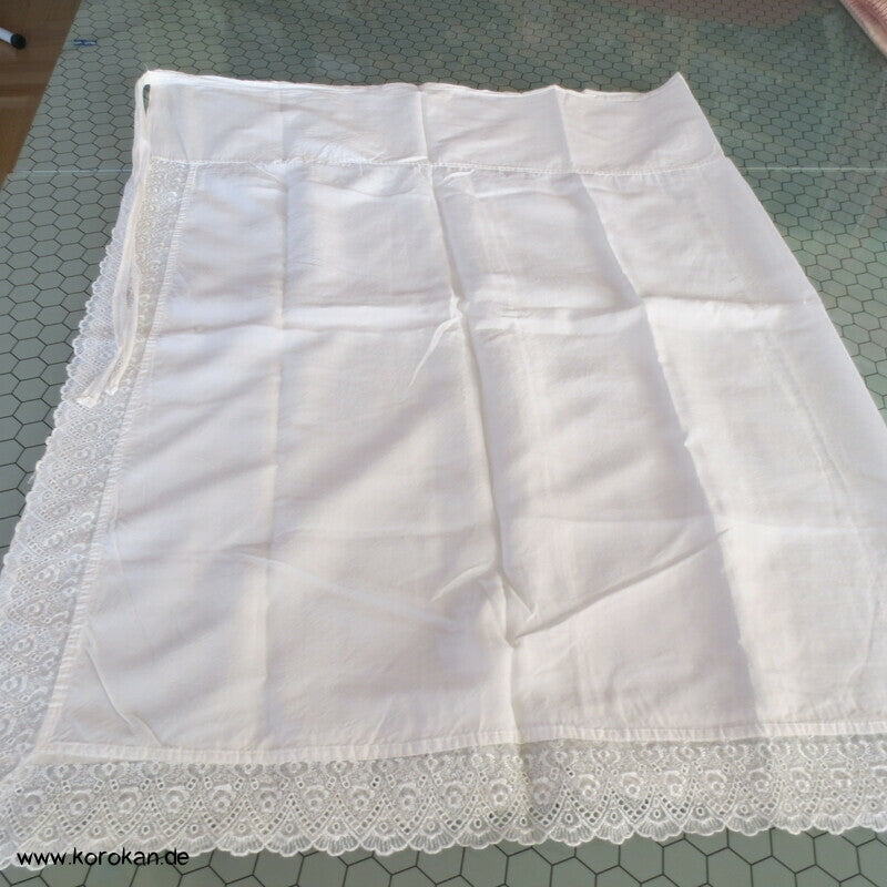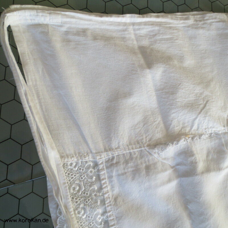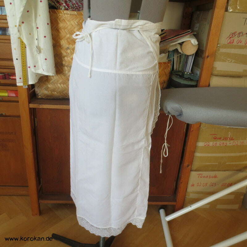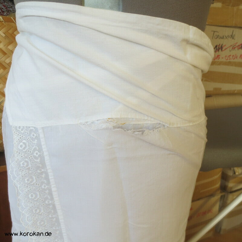 Vintage Susoyoke Kimono Juban Unterrock, weiß mit Spitzenrand, Baumwolle, eventuell mit Beimischung, sauber, defekt - mit Riss - zum selber reparieren.