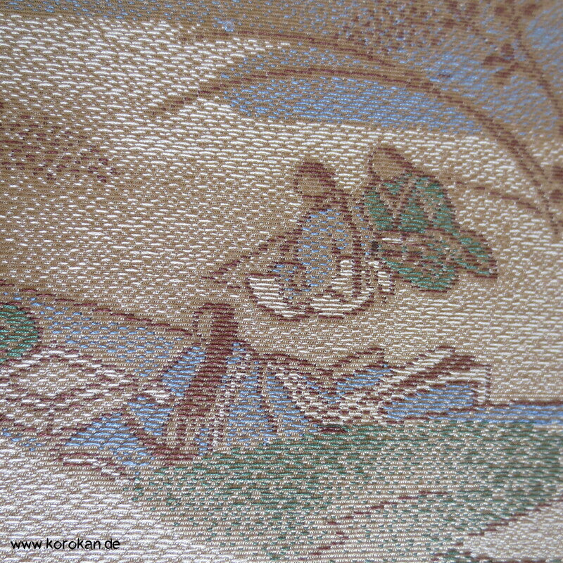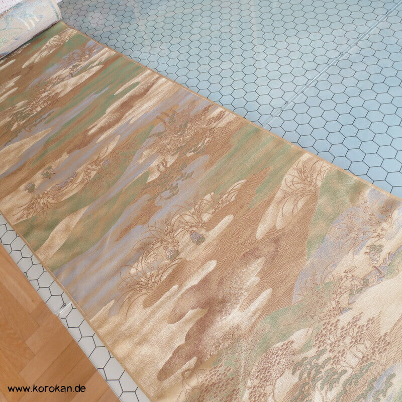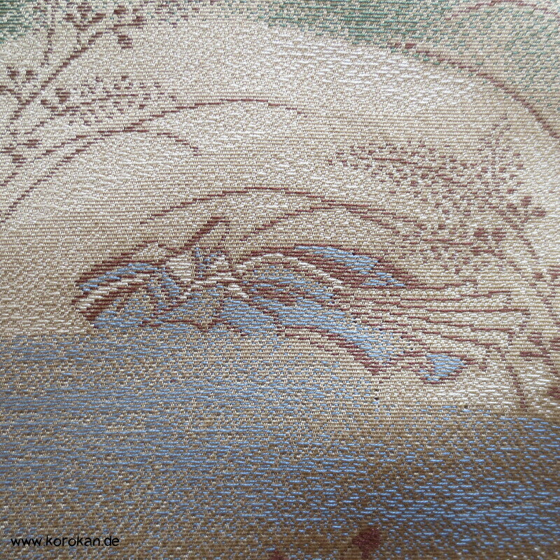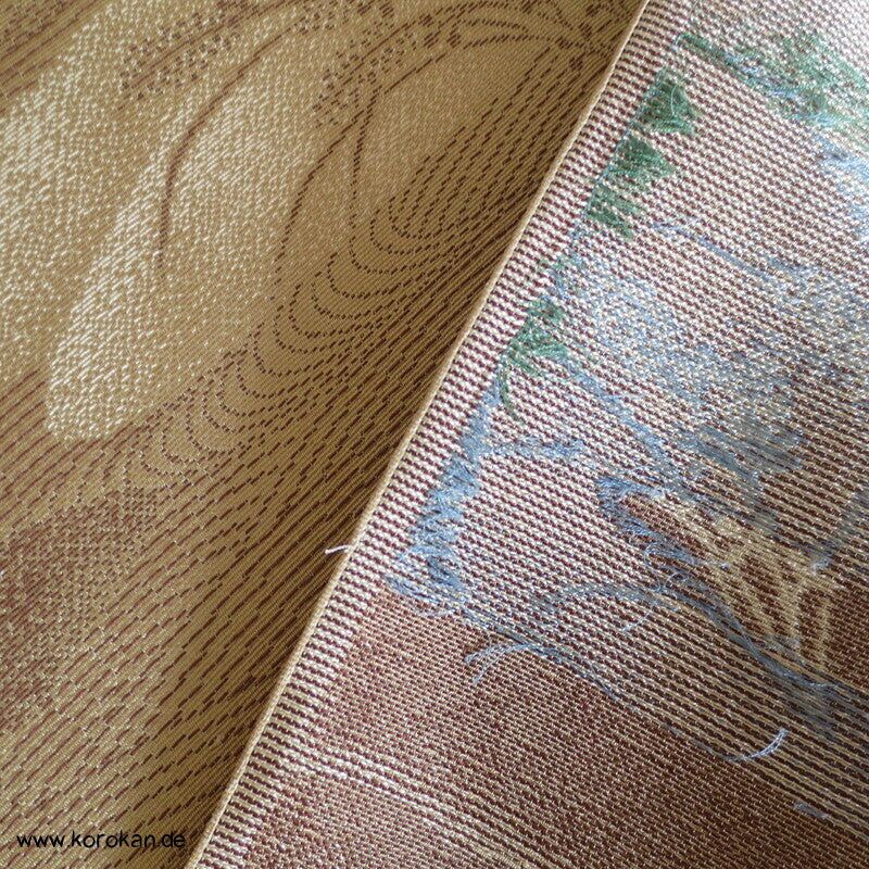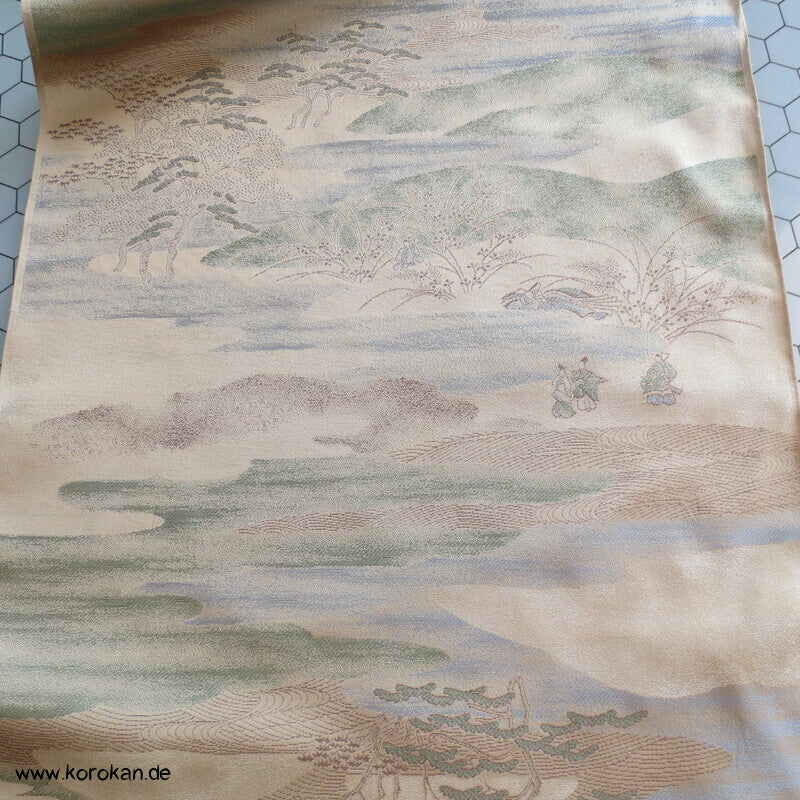 Vintage unbenutzte Stoffrolle gewebte Gartenszenen aus den Heian Zeit Kimono Tanmono Jacquard