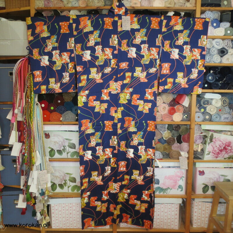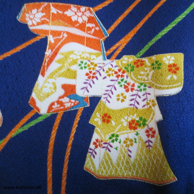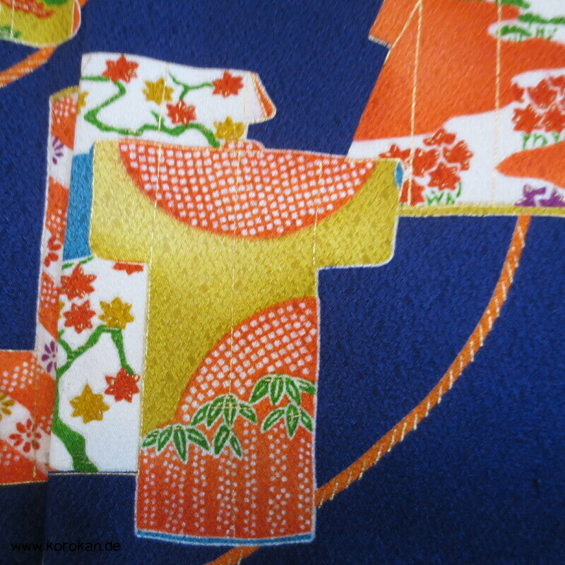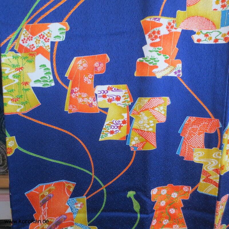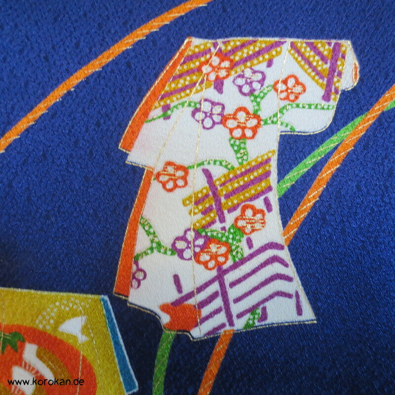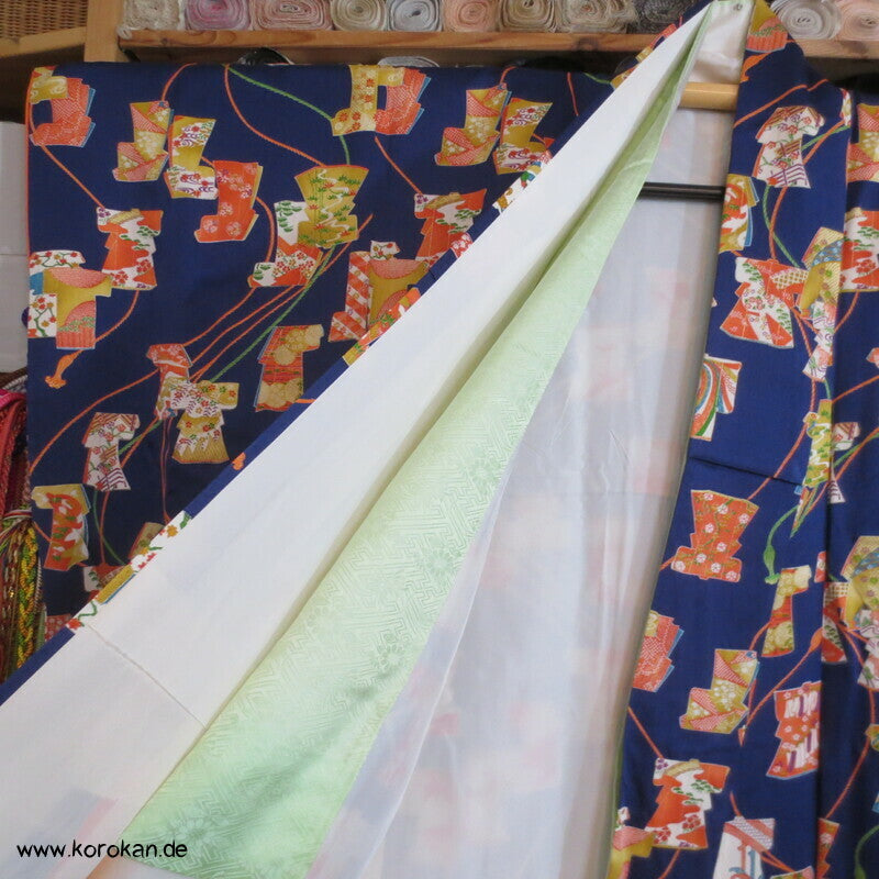 Tagasode und Flechtbänder auf kobaltblau Komon Kimono