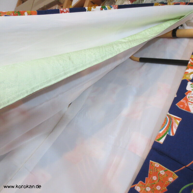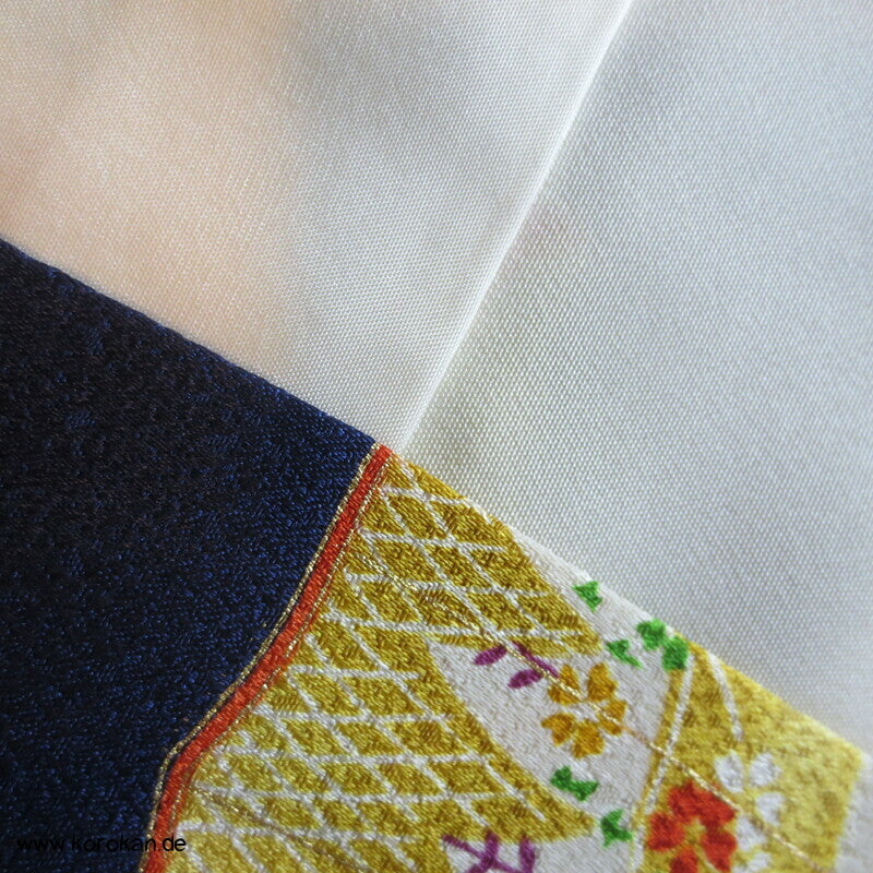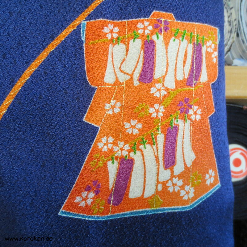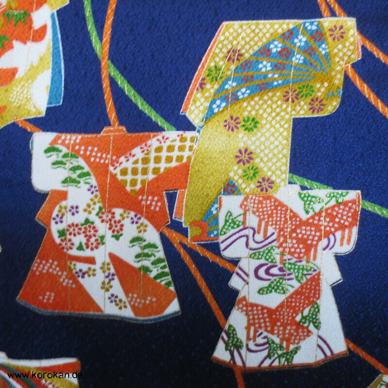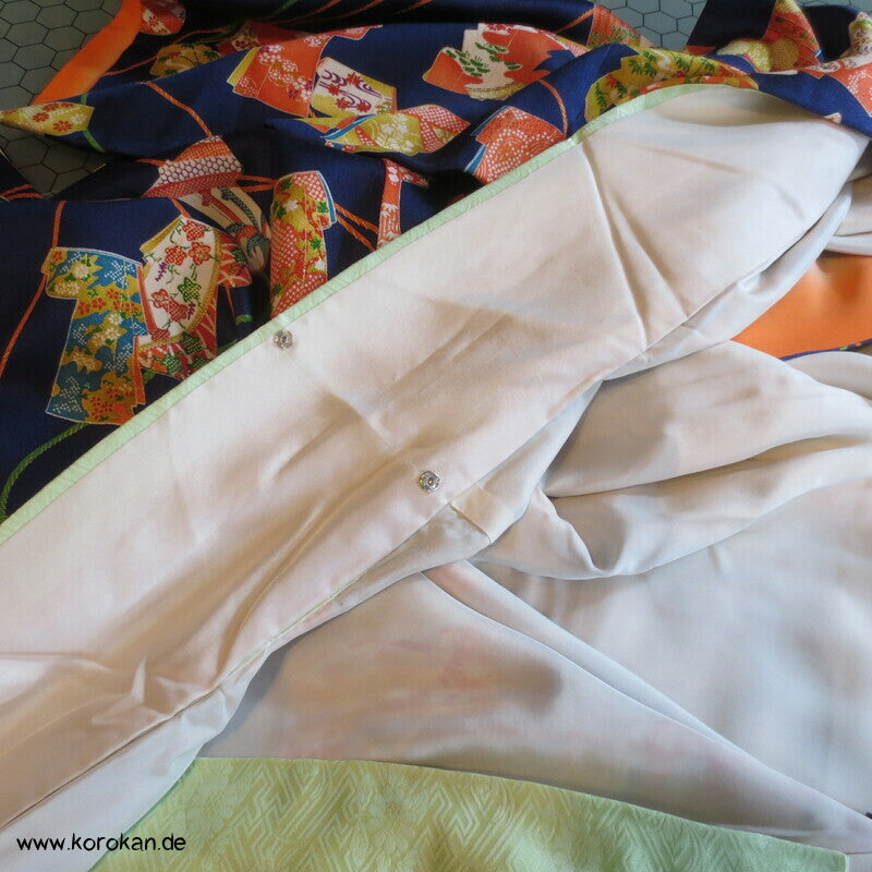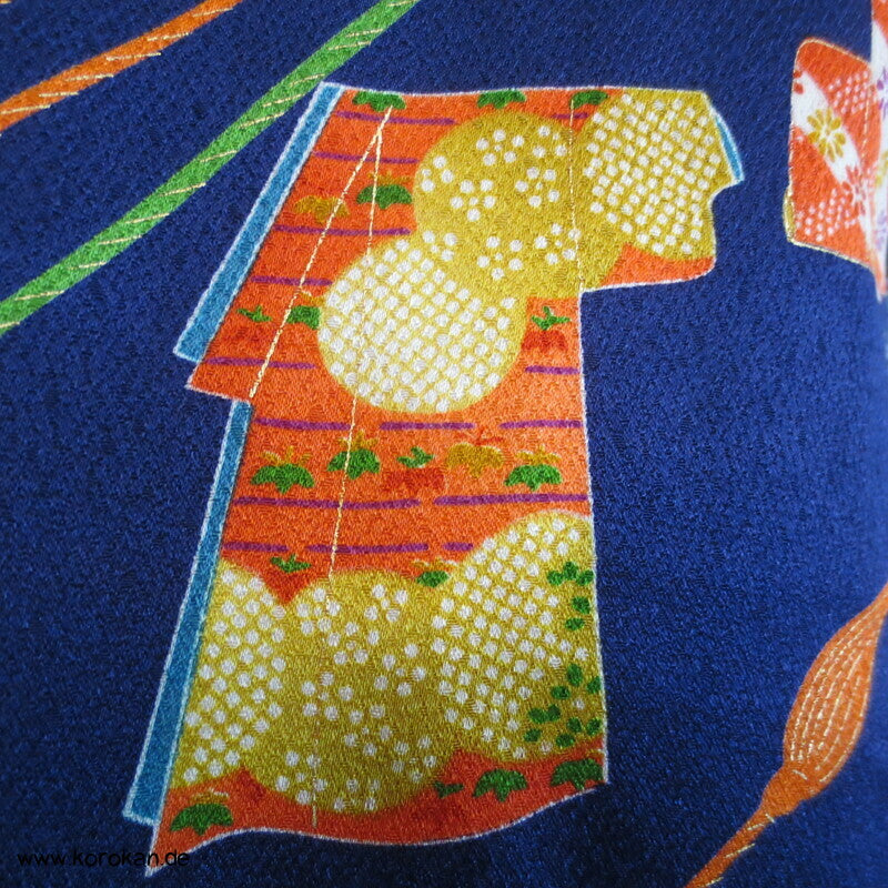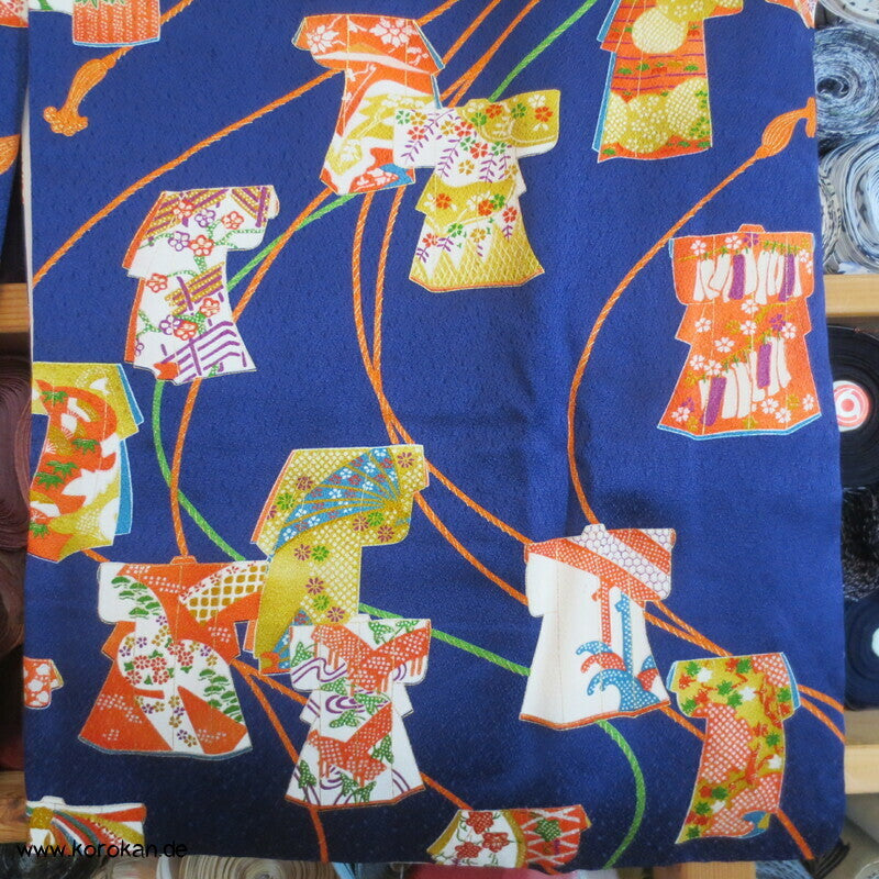 Tagasode und Flechtbänder auf kobaltblau Komon Kimono