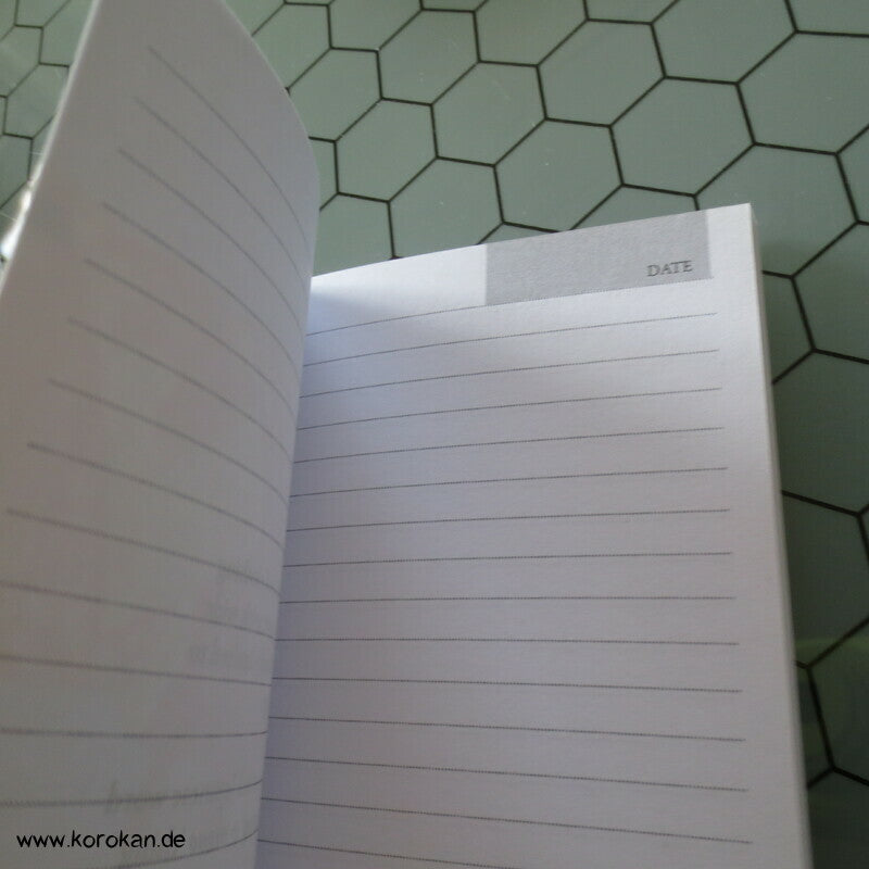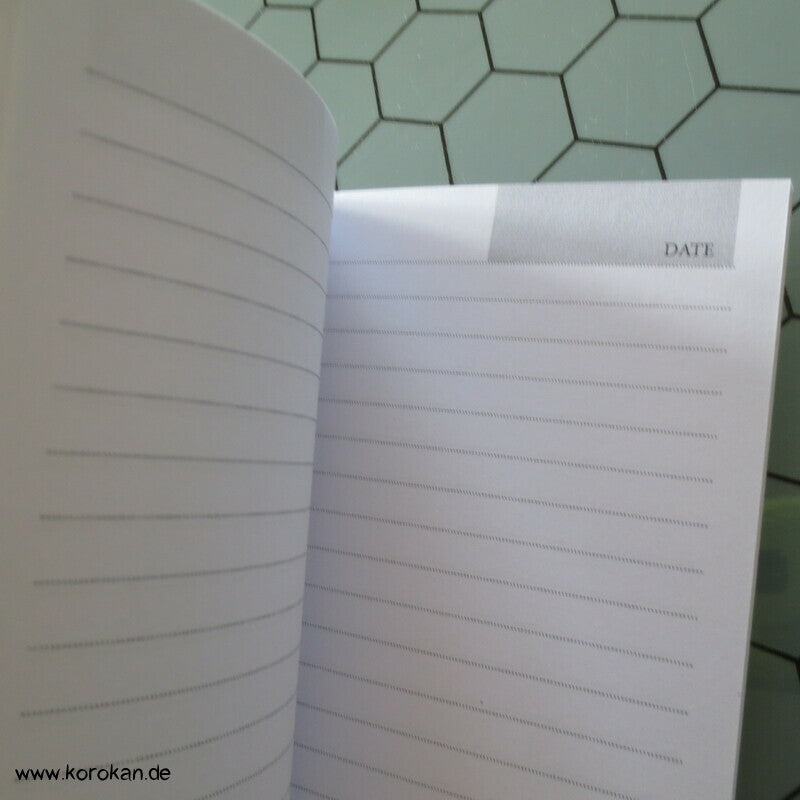 Tagebuch, Journal mit linierten Seiten mit Datumsfeld und Kicho hängendem Kimono Motiv auf der Vorderseite - broschiert - Pappeinband mit feinen Papierseiten
