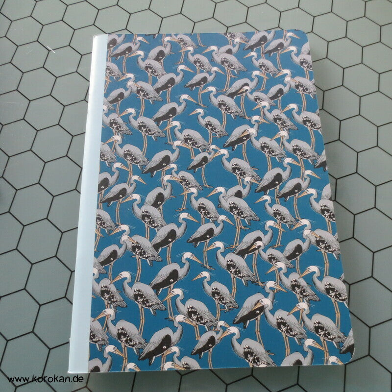 Schreibheft mit karierten Seiten Kranich Motiv auf der Vorderseite - broschiert - Pappeinband mit feinen Papierseiten