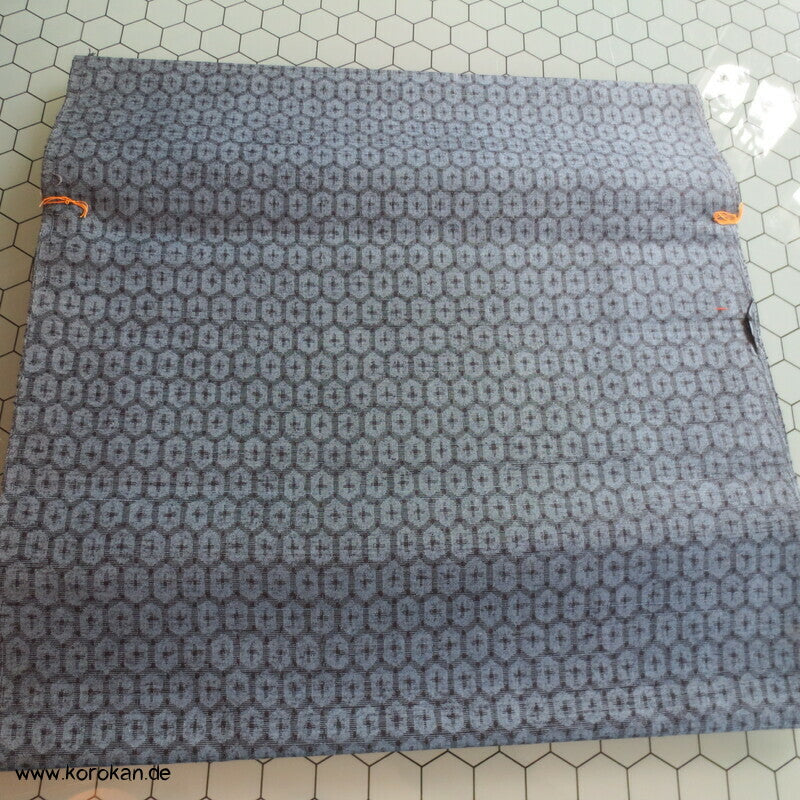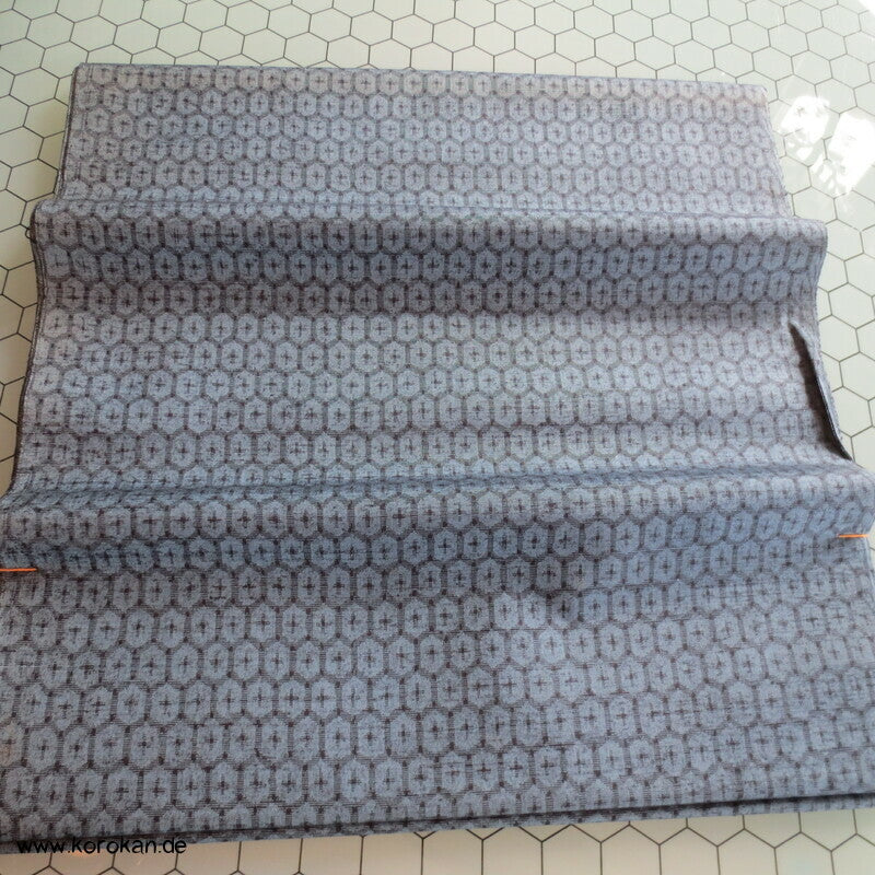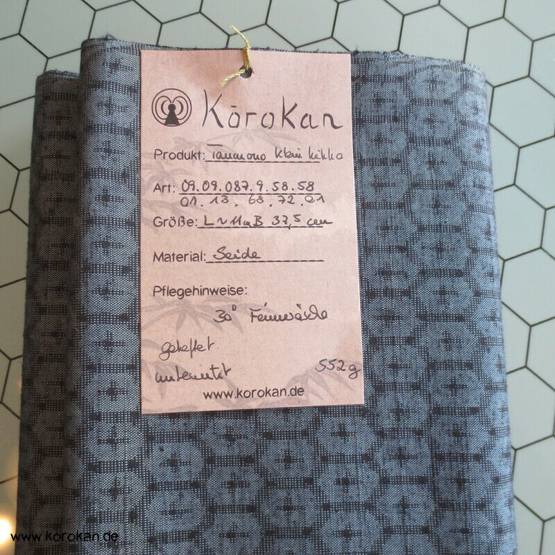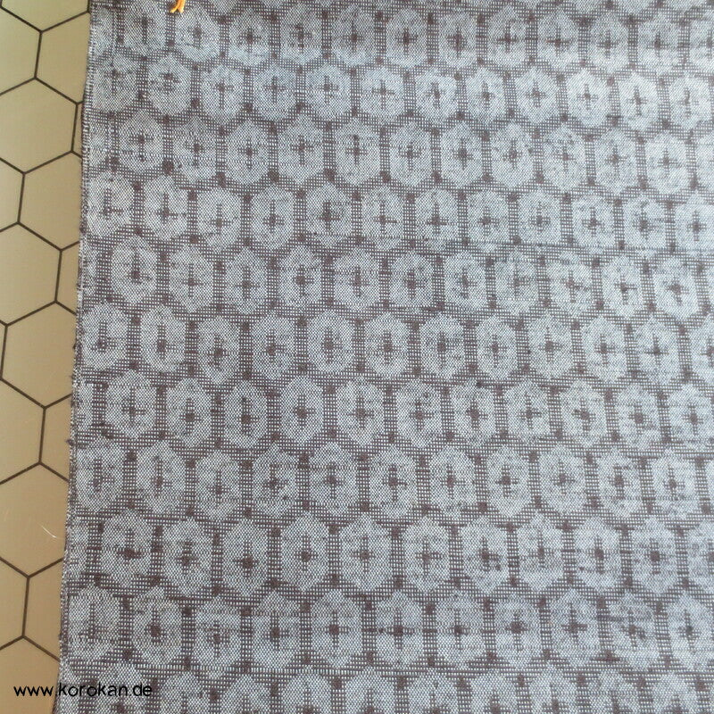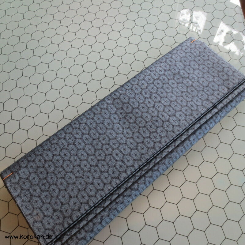 japanische Vintage unbenutzte, originalgeheftete Tanmono Kimono Stoffrolle Tsumugi Seide, fein garngefärbtes mittelgroßes Kikko Sechseckmotiv in blaugrau / anthrazit