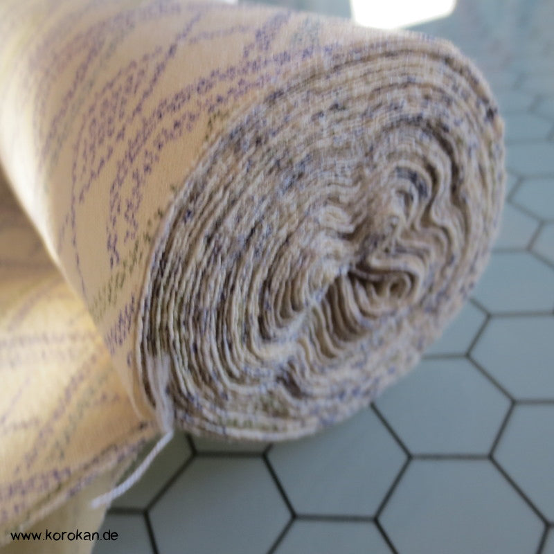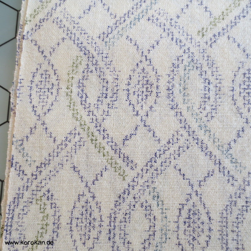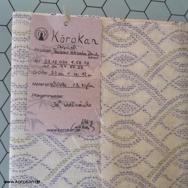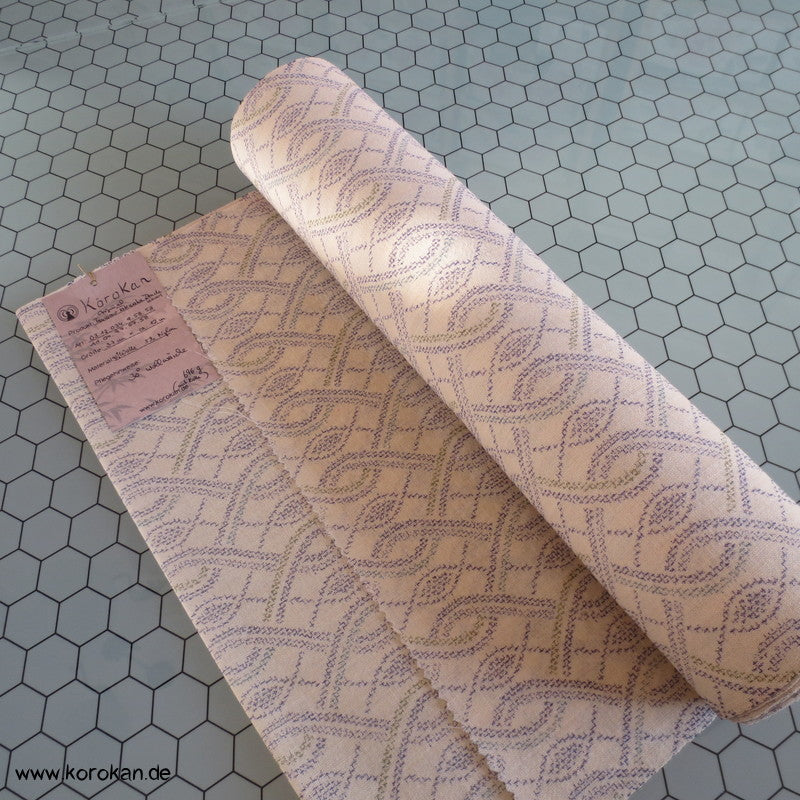 japanische Vintage unbenutzte originalgeheftete Stoffrolle Tanmono Wolle natur mit Tatewaku Wellennetz Druck