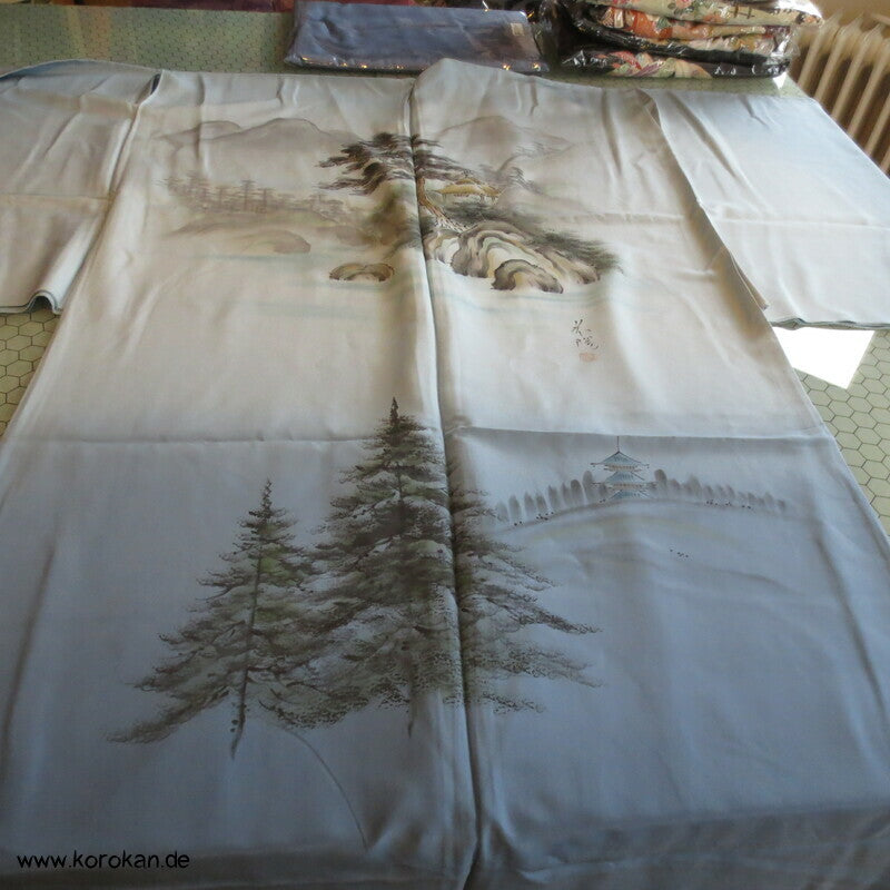 Vintage unbenutzter Karieba Männer Juban Kimono Honan Seiden Stoff, zugeschnitten, geheftet, nicht genäht. Neuer Stoff
