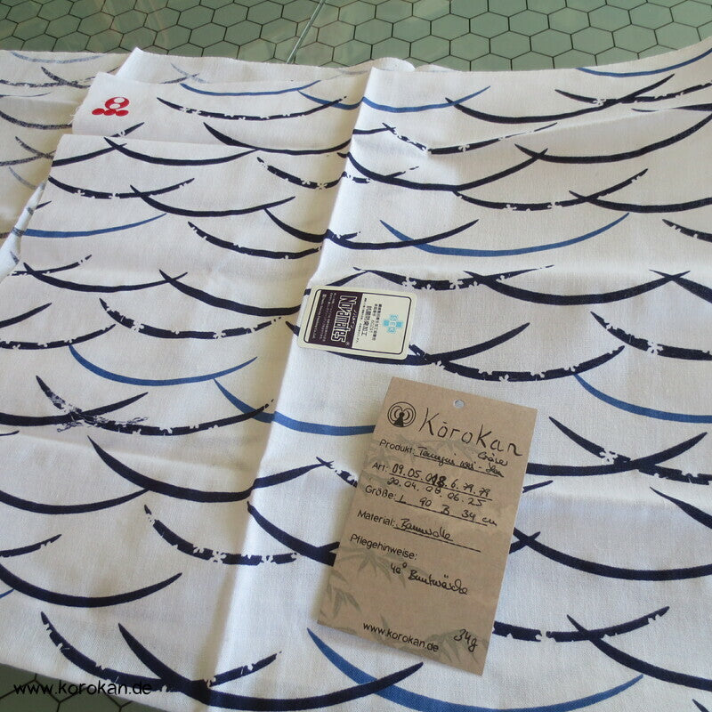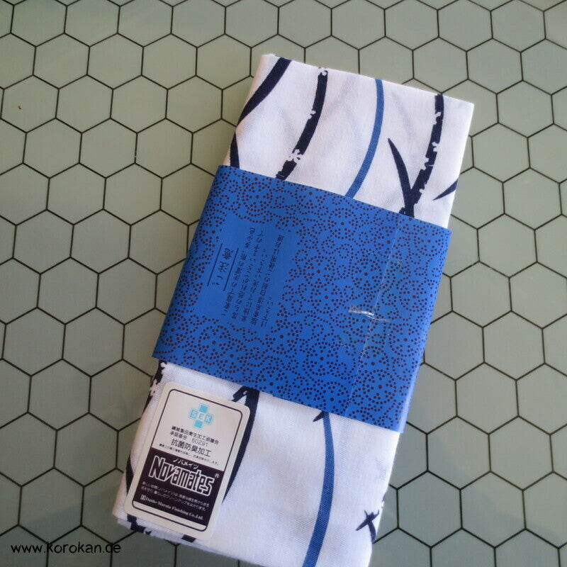 Tenugui Baumwollhandtuch blaue Gräserwellen von Tepco