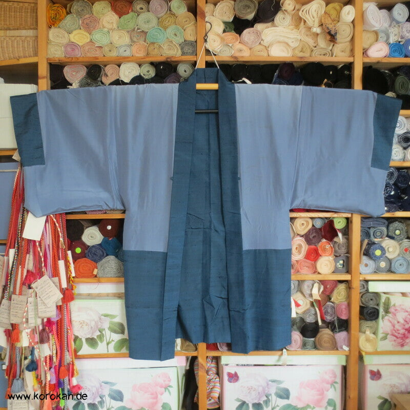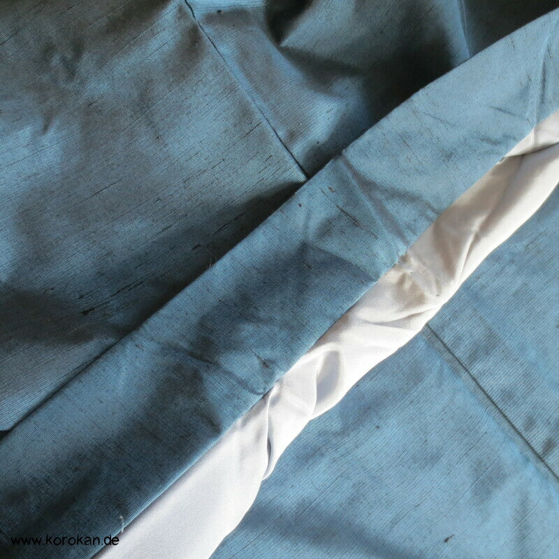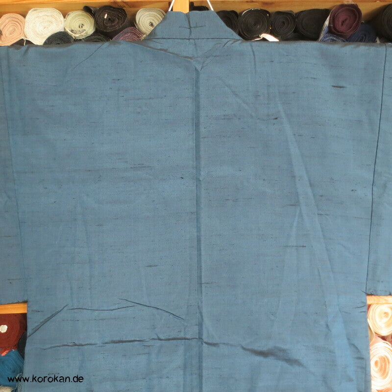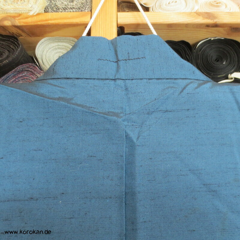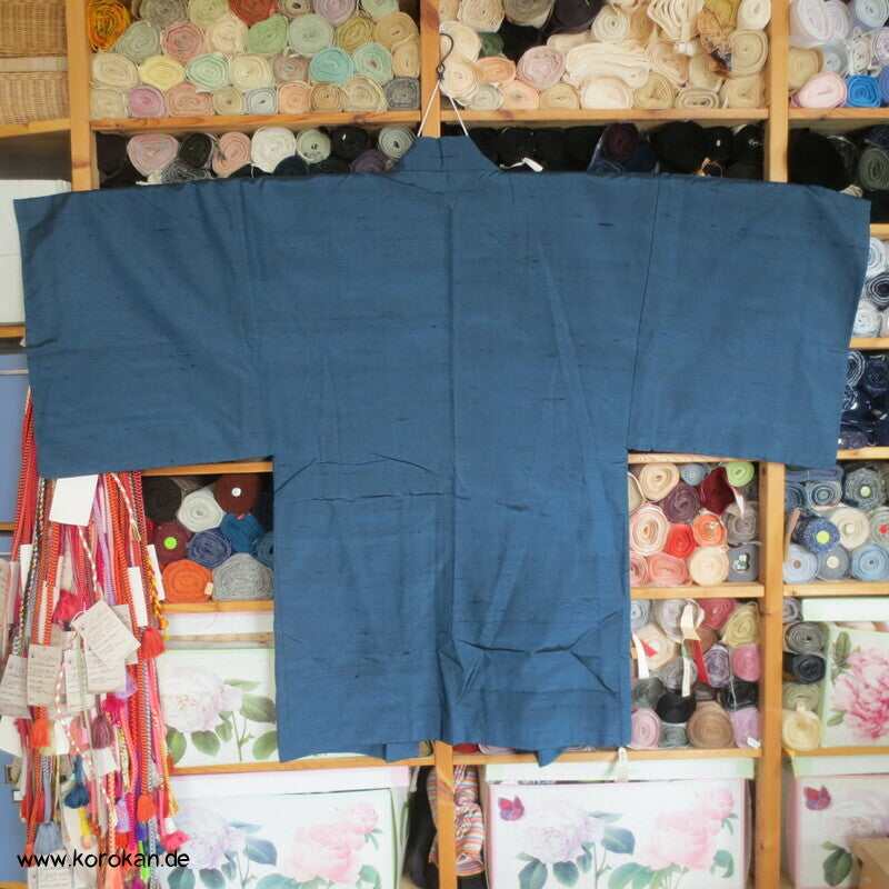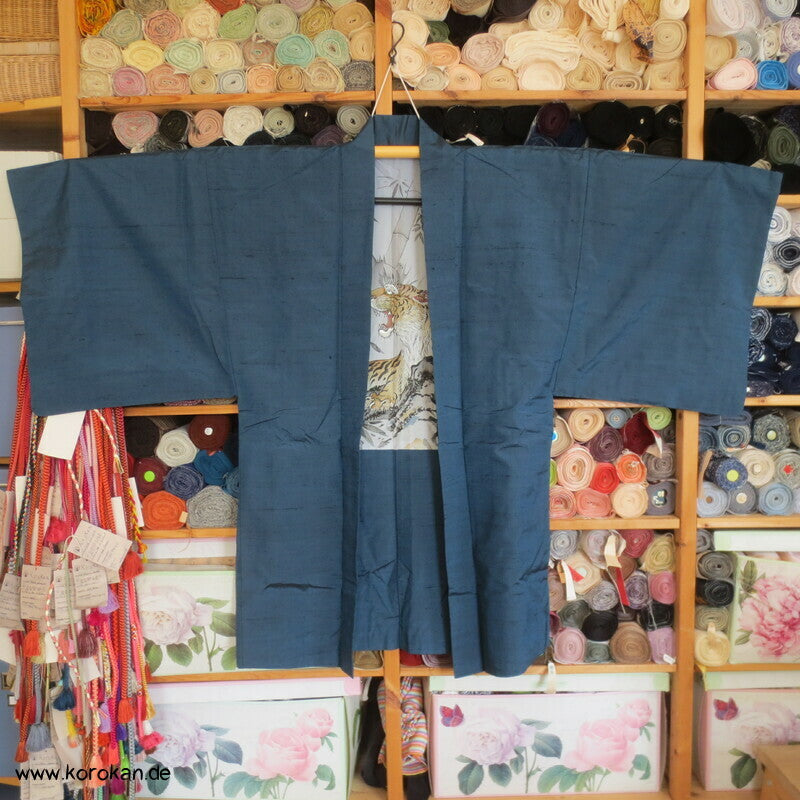 Vintage japanische Männer Haori aus grob gewebter petrol blauer Tsumugi Seide mit handgemaltem Tiger im Bambus Futter