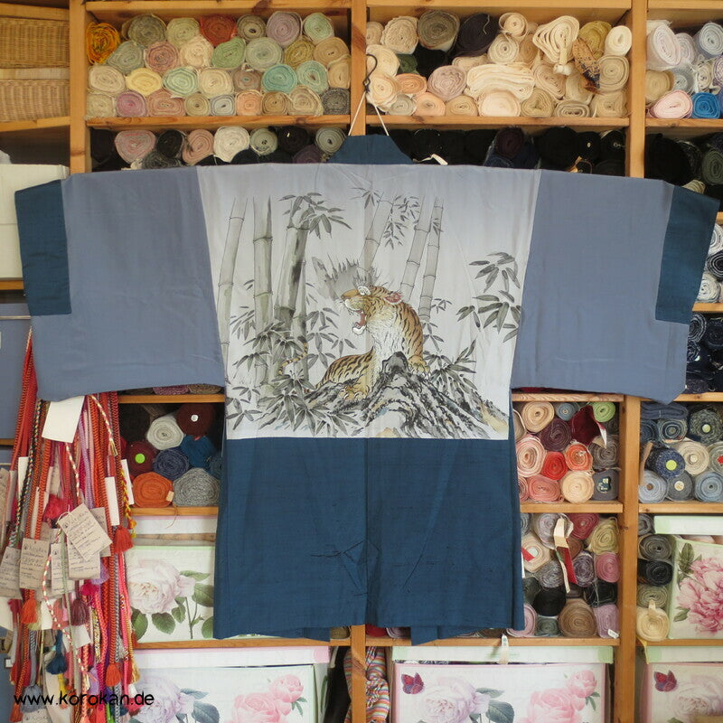 Tiger im Bambus handgemalt Fushi Tsumugi Haori