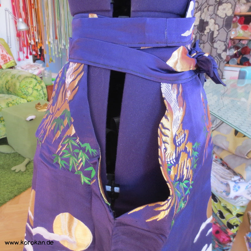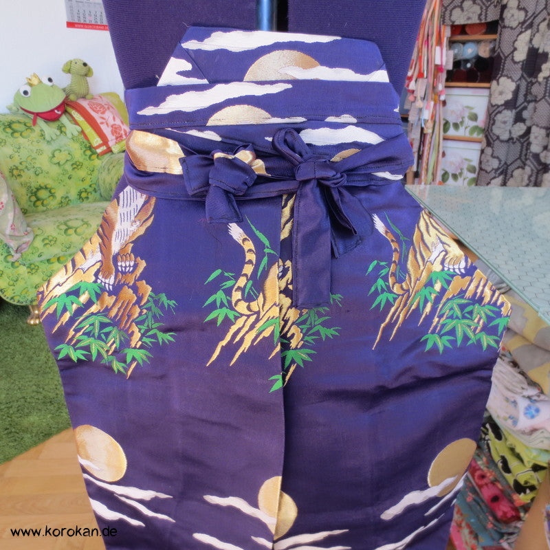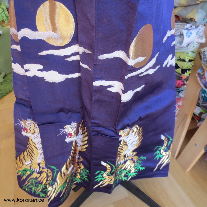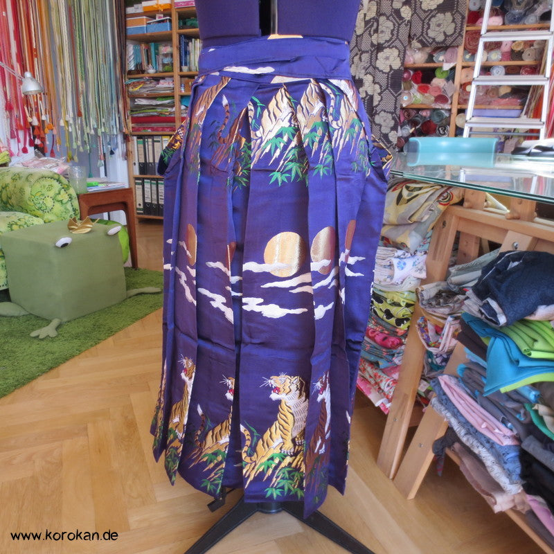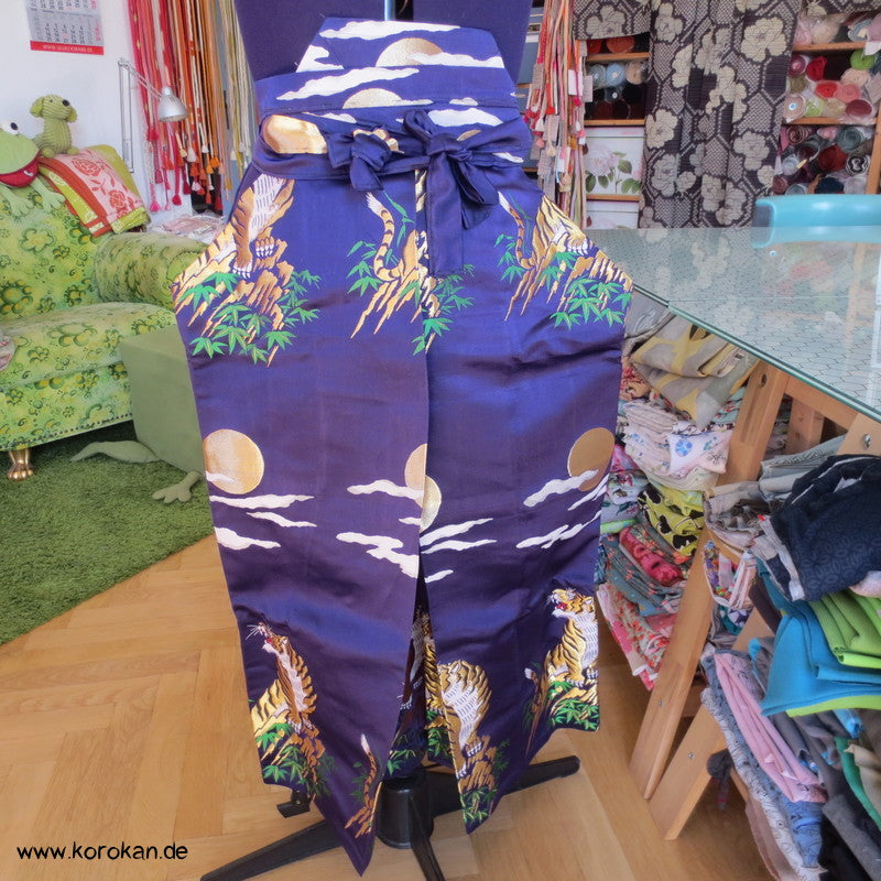 japanische Vintage Brokat Hakama, Umanori Hosentyp, Seidenbrokat Tiger vor Mond