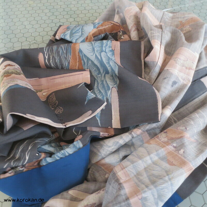 Tokkaido Szenen Wollmuslin Juban Unterkimono