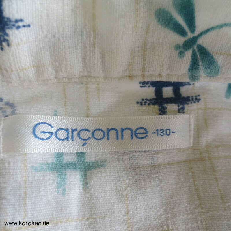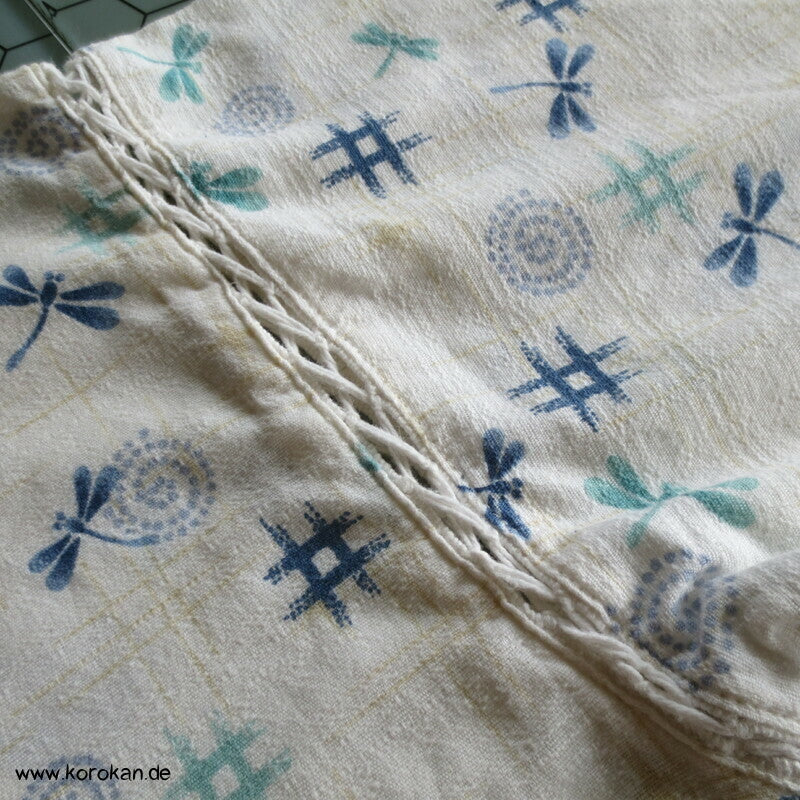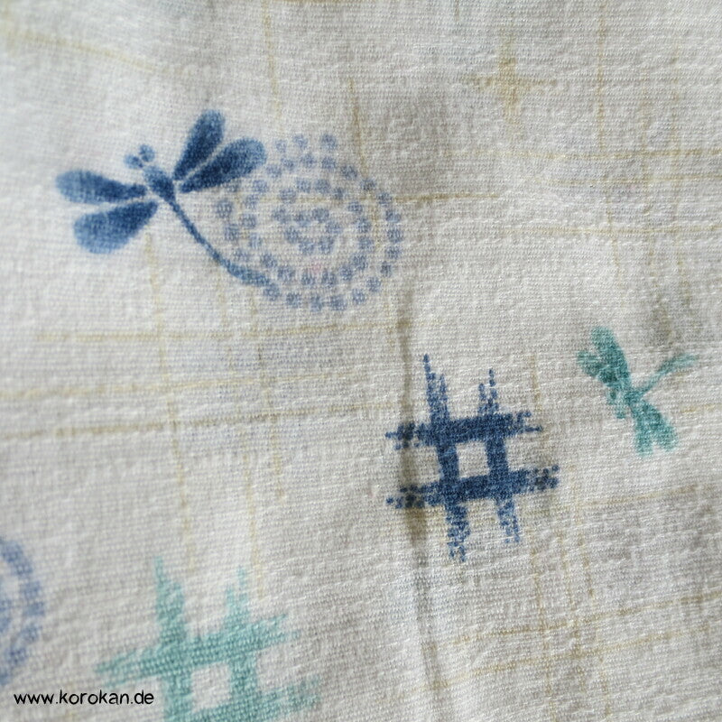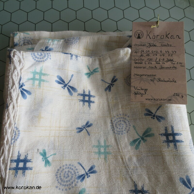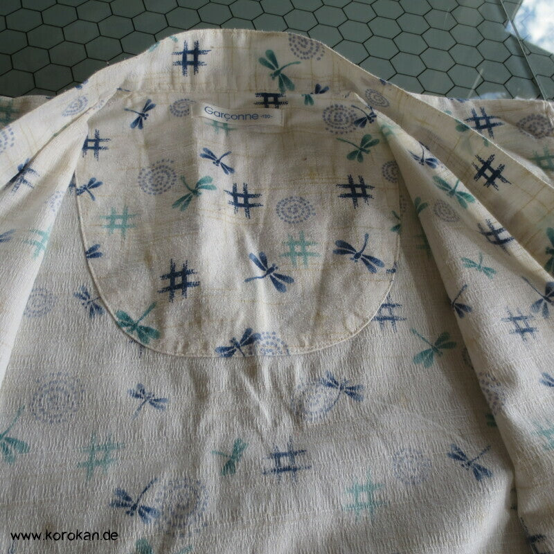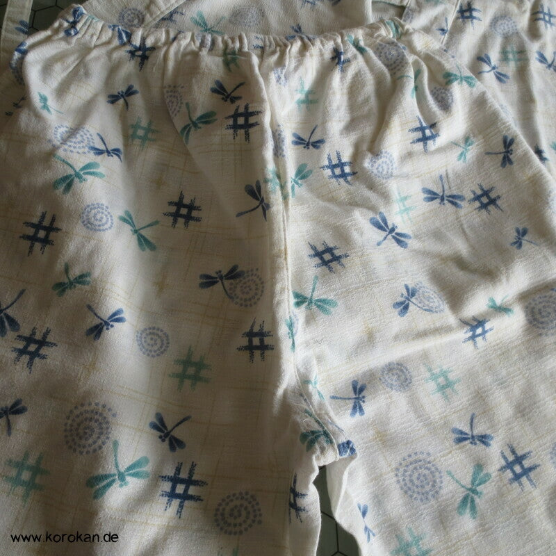 Vintage Jinbei für Kinder - Zweiteiler aus Hose und Jacke, dicke Baumwolle mit Tombo Libellen Druck, klassische Bandverbindung zwischen Ärmel und Korpus.