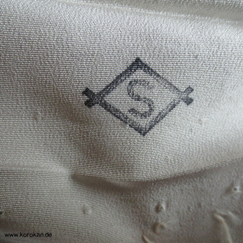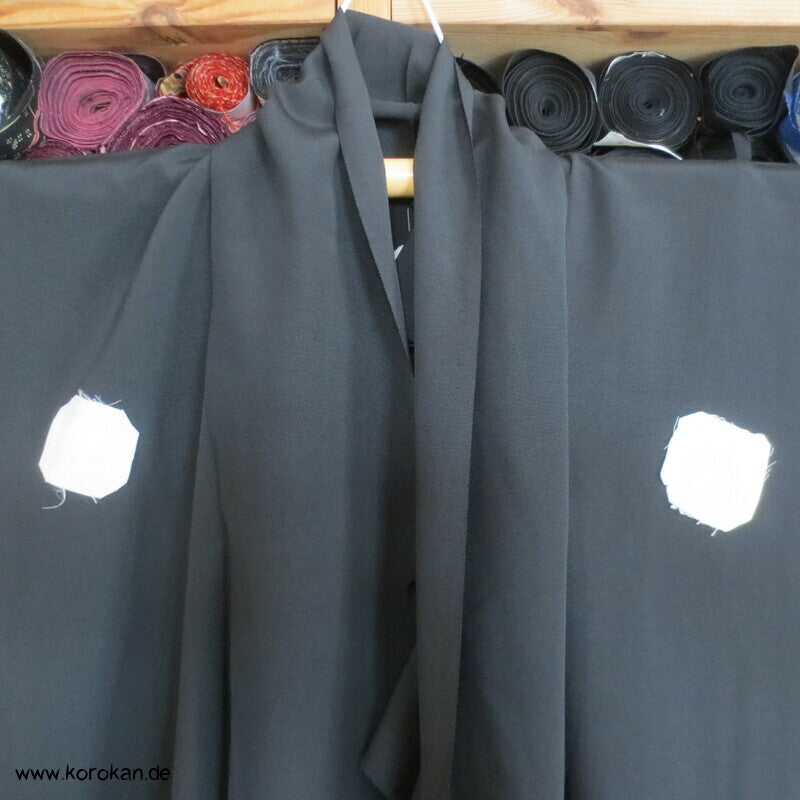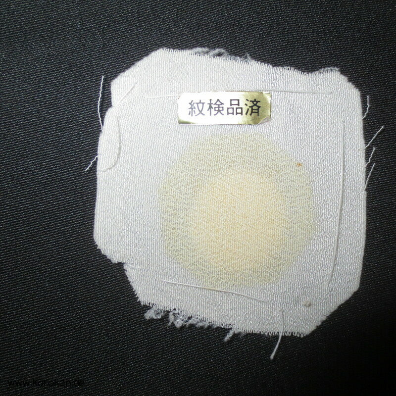 Vintage unbenutzter Karieba Tomesode, geheftet, nicht genäht, bestickter goldener Bambusblätter, mit lauter kleinen Mustern, Seidencrepe mit Stempeln