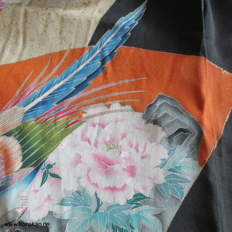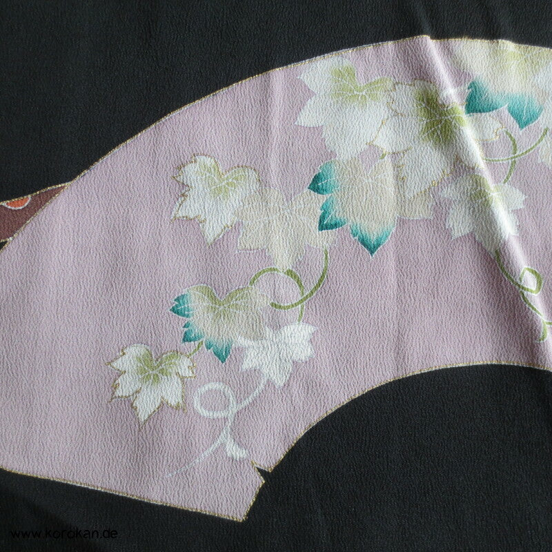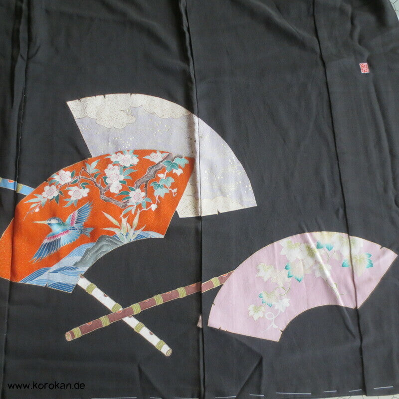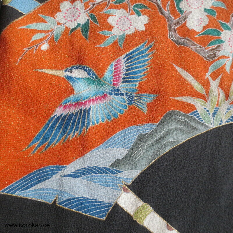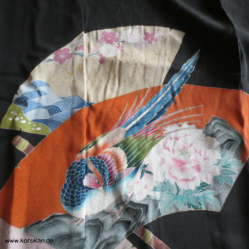 Tomesode, Fächer mit Fasan und Eisvogel Seiden Karieba