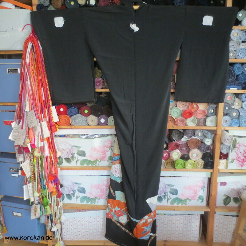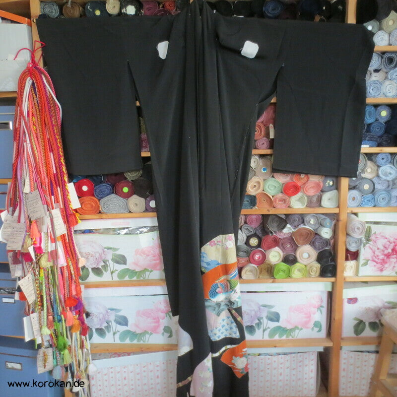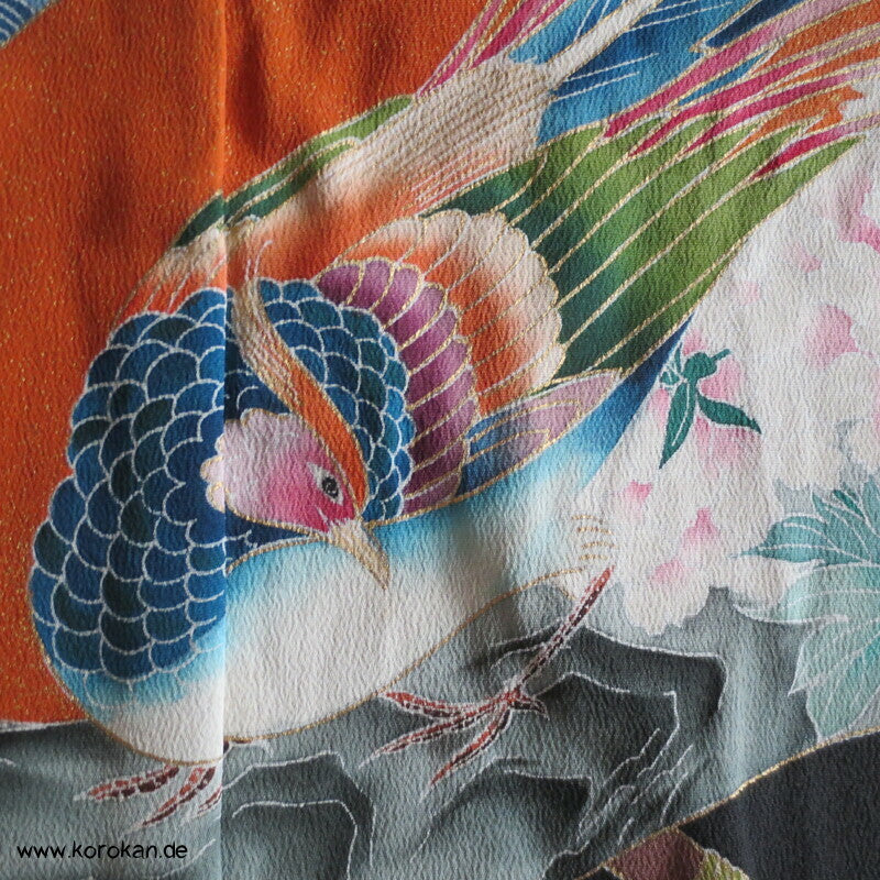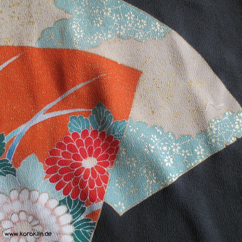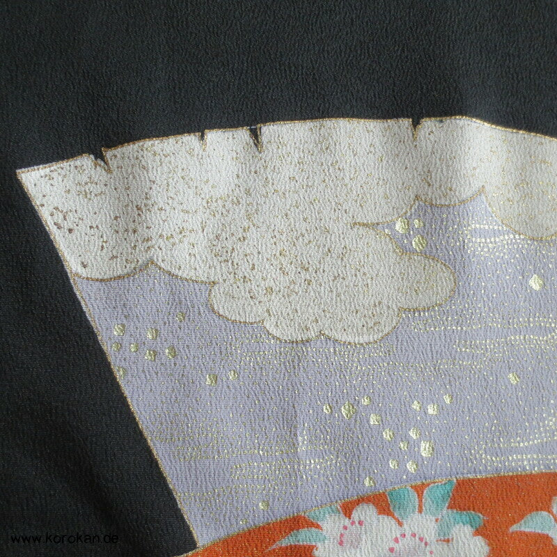 Tomesode, Fächer mit Fasan und Eisvogel Seiden Karieba