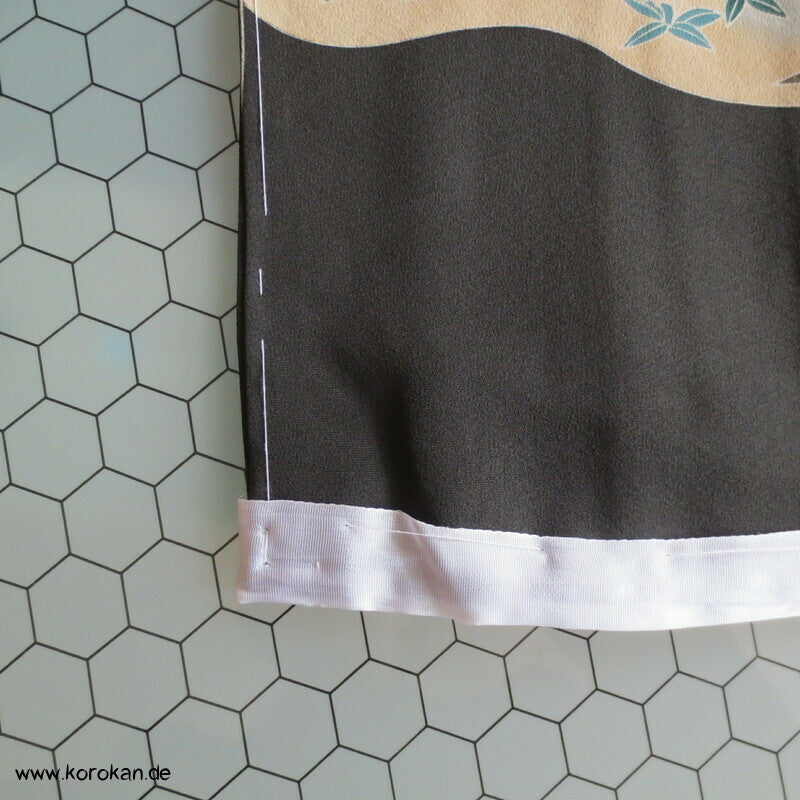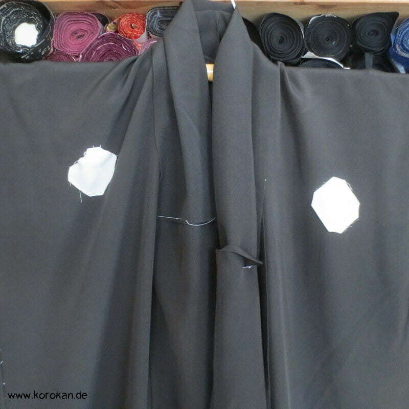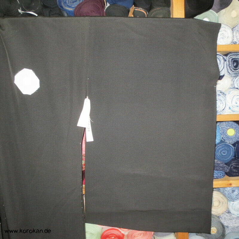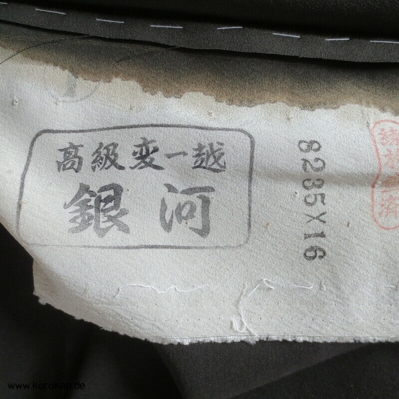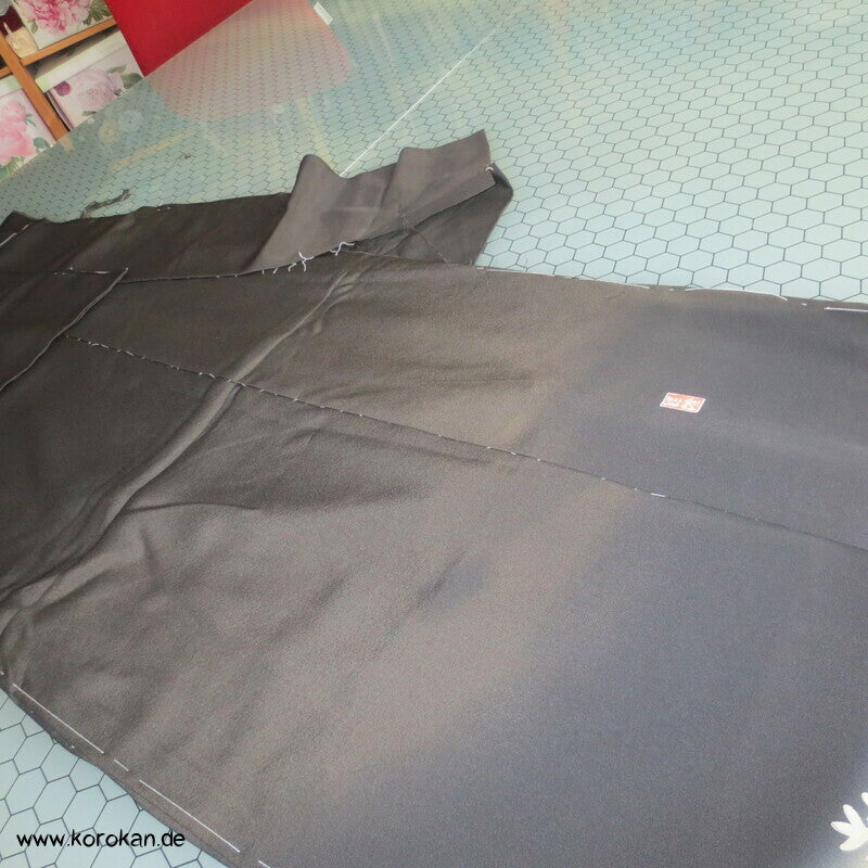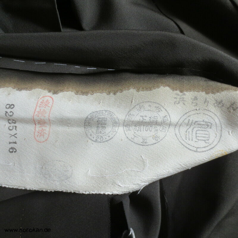 Vintage unbenutzter Karieba Tomesode, geheftet, nicht genäht, Landschaft mit Bäumen und Vögeln, neuer Stoff, etwas verschossen, Seide mit Stempeln