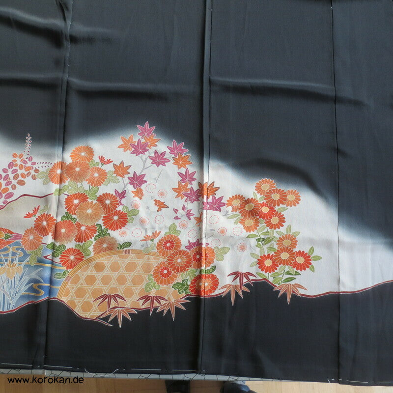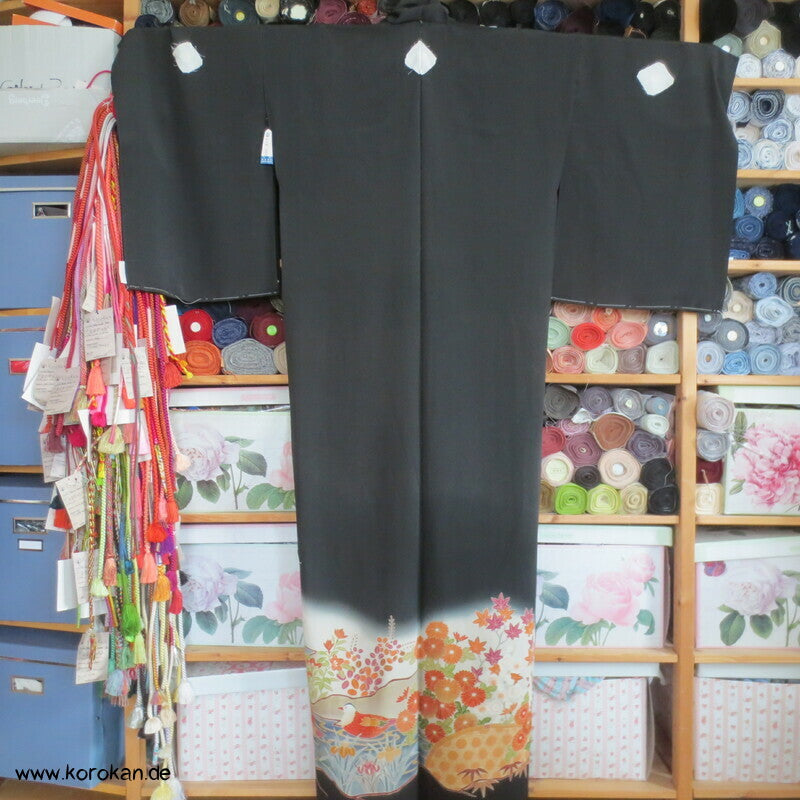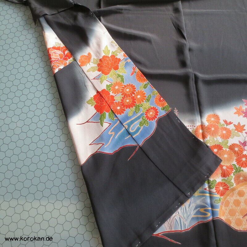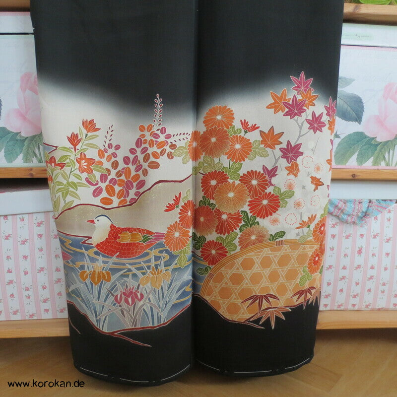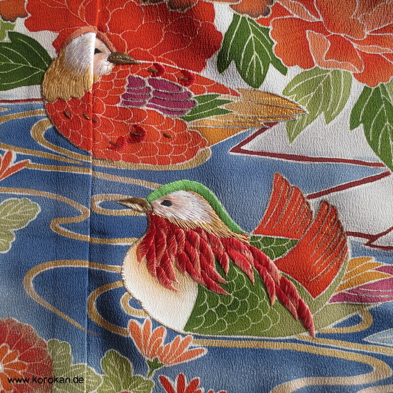 Tomesode, Mandarinenten, teilbestickt Seiden Karieba