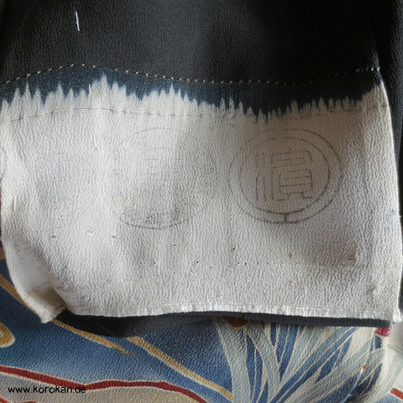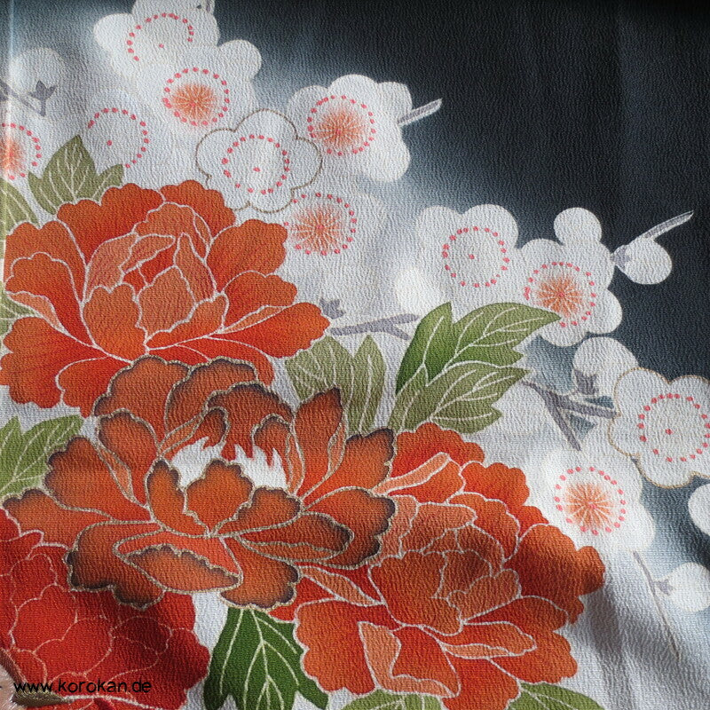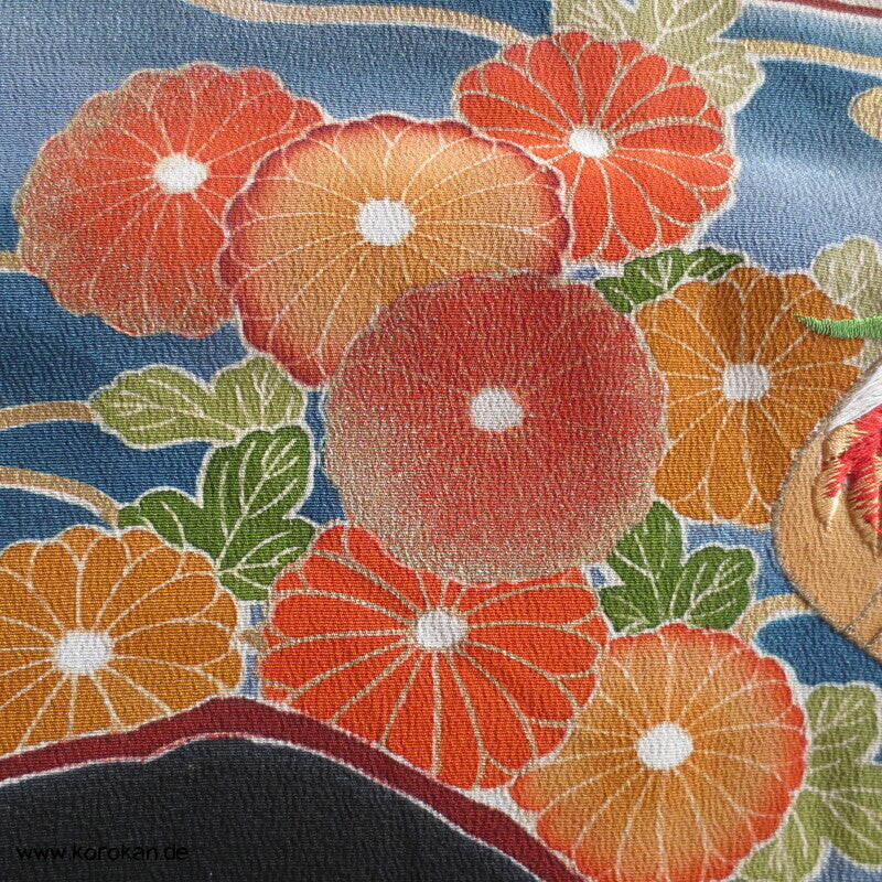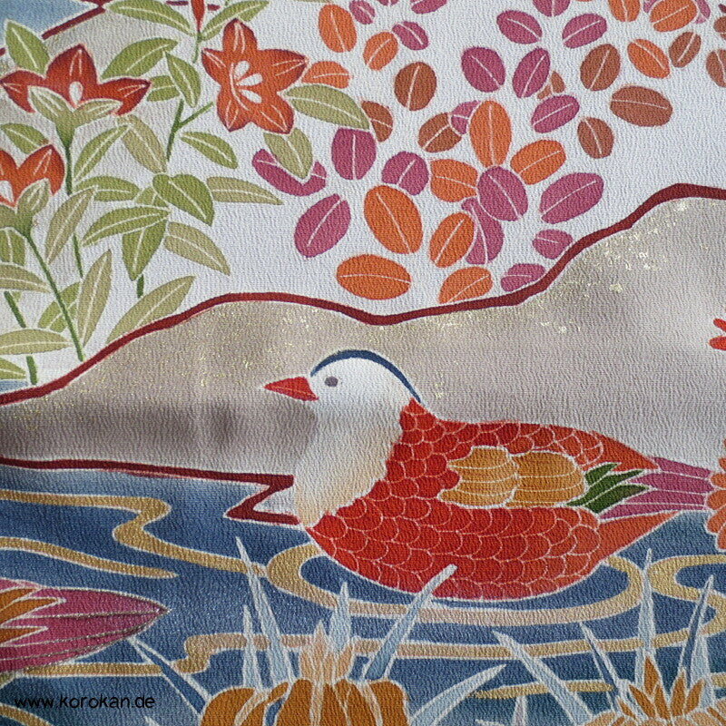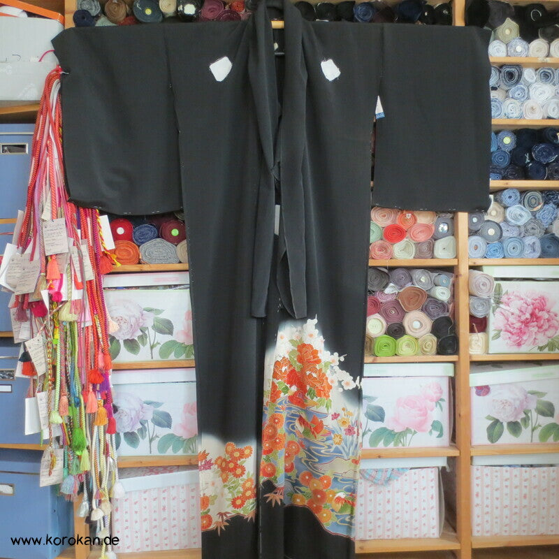Tomesode, Mandarinenten, teilbestickt Seiden Karieba
